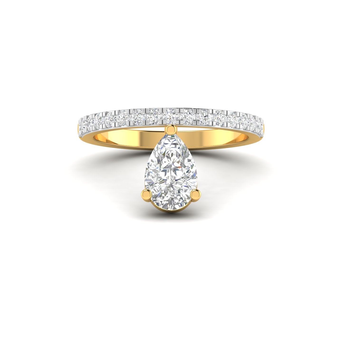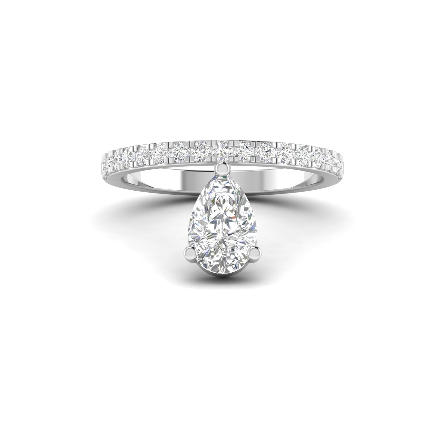 Celebrate your unique love story with this breathtaking 1.01 Carat Pear-Shaped Diamond Ring. This piece is a triumph of modern jewelry engineering, featuring a "floating" teardrop center stone that offers a contemporary twist on the classic solitaire.