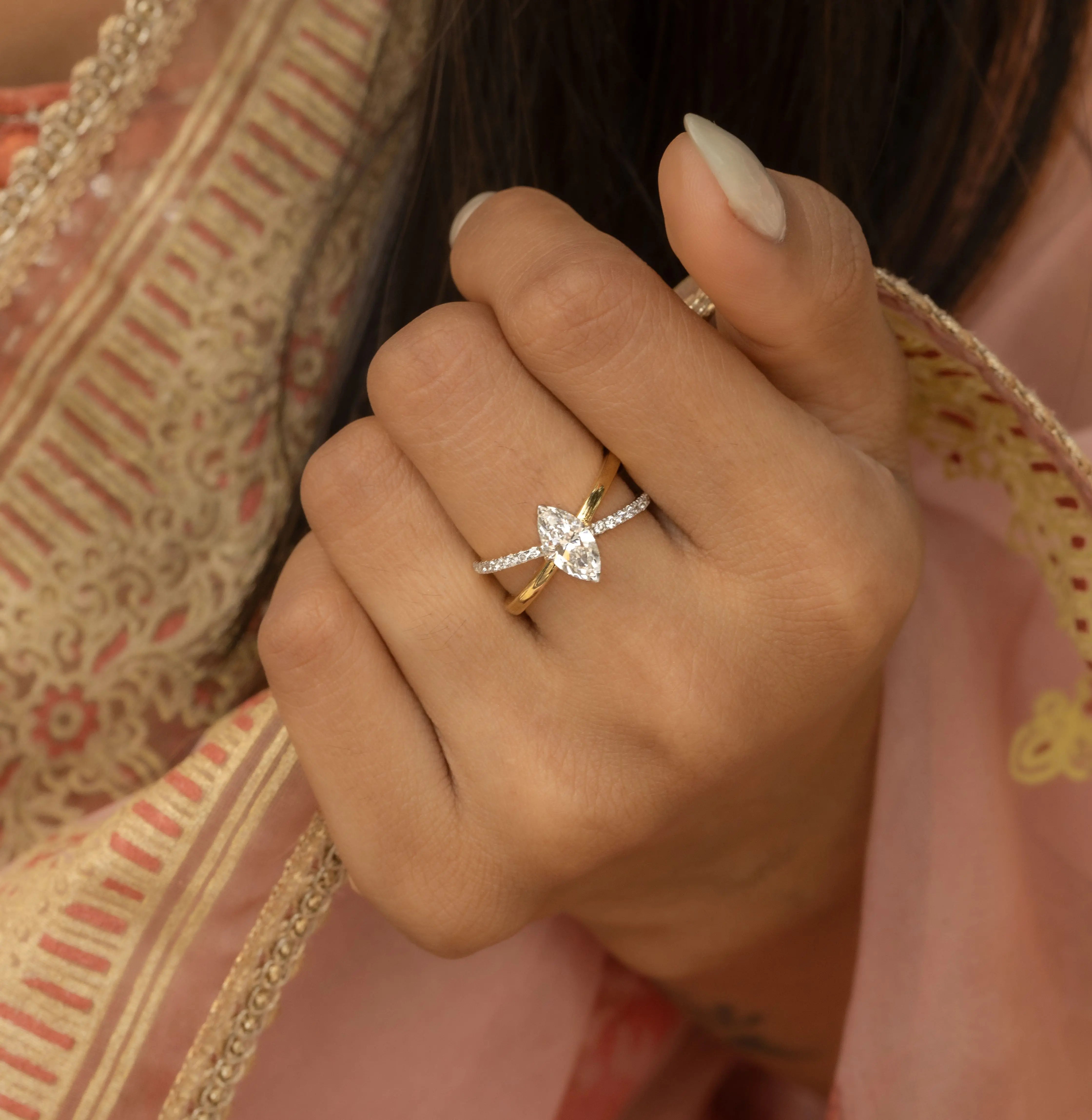 This 1.17 Carat Lab Grown Diamond Solitaire Ring features a stunning marquise shaped diamond known for its brilliance and clarity. Set in a classic solitaire design, this ethically crafted lab grown diamond solitaire ring exudes timeless elegance and modern sustainability perfect for those who value both style and conscious luxury.