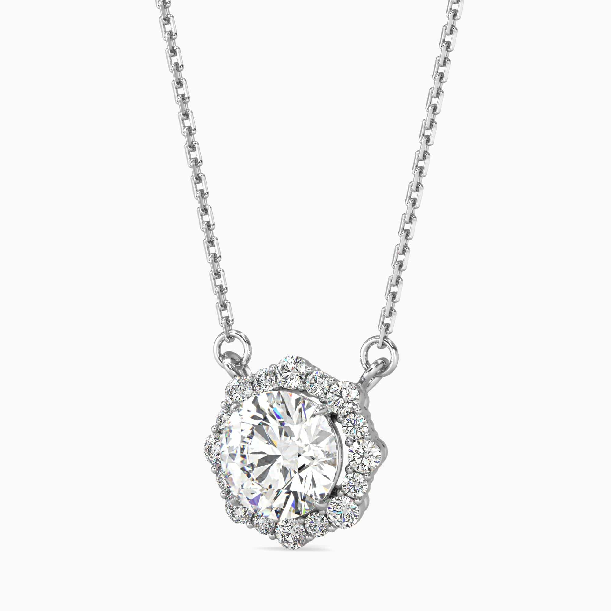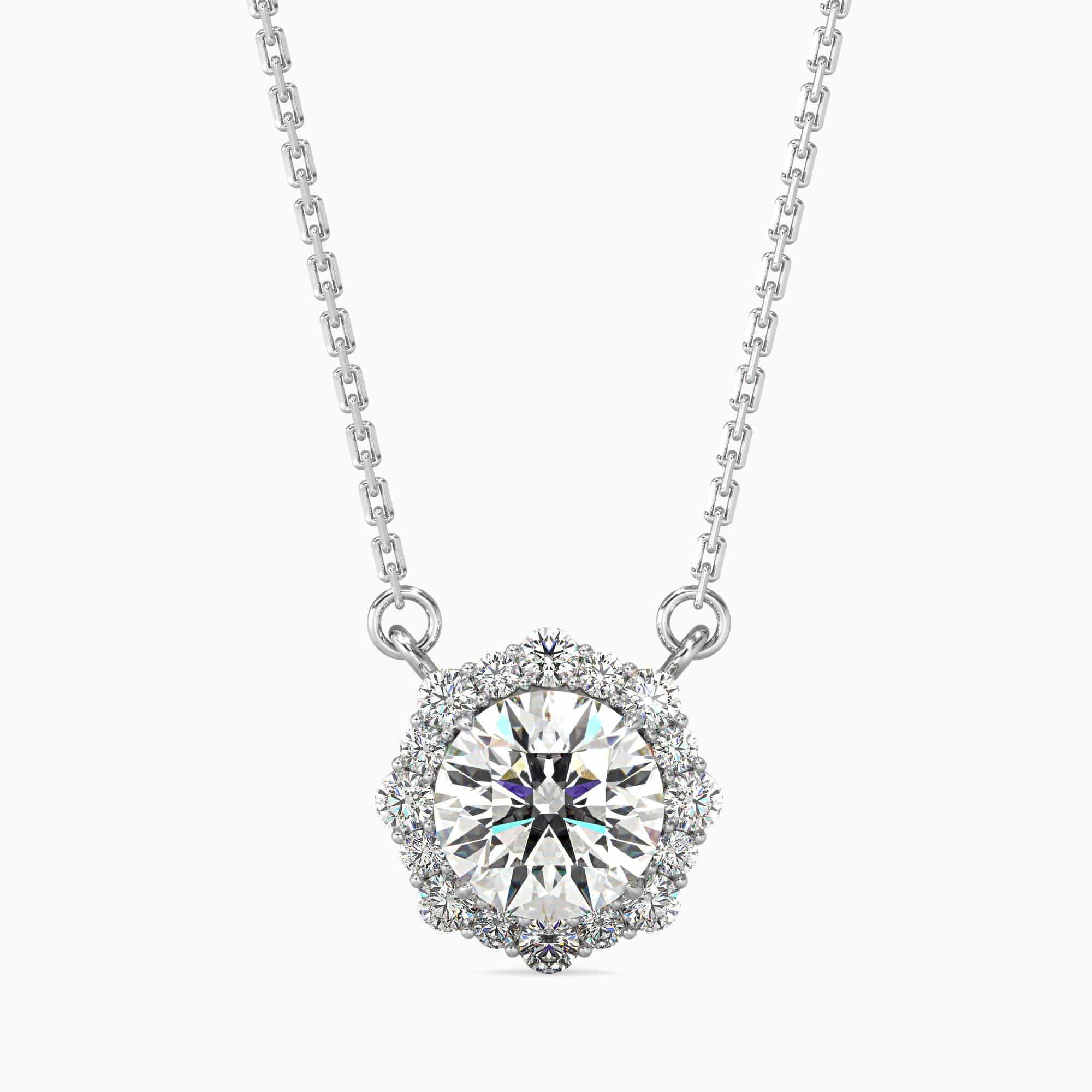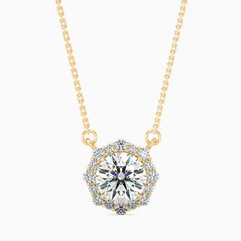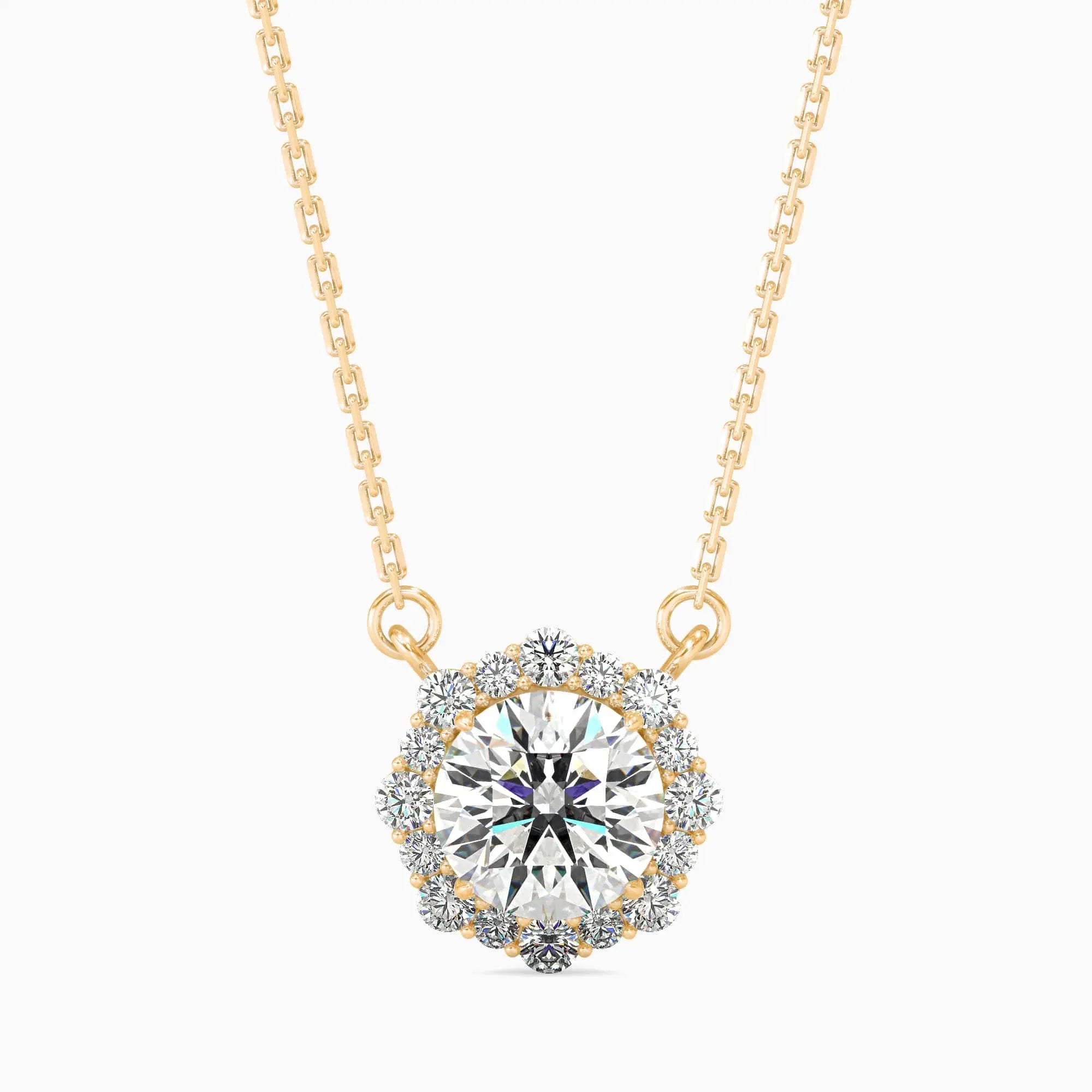 This 1 Carat Centre Solitaire Round Diamond Halo Pendant showcases a brilliant lab grown diamond, expertly set within a delicate halo to enhance its sparkle. Combining ethical sourcing with timeless design, this pendant offers a sophisticated touch of elegance, perfect for those who appreciate both beauty and sustainability.