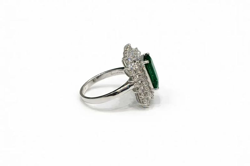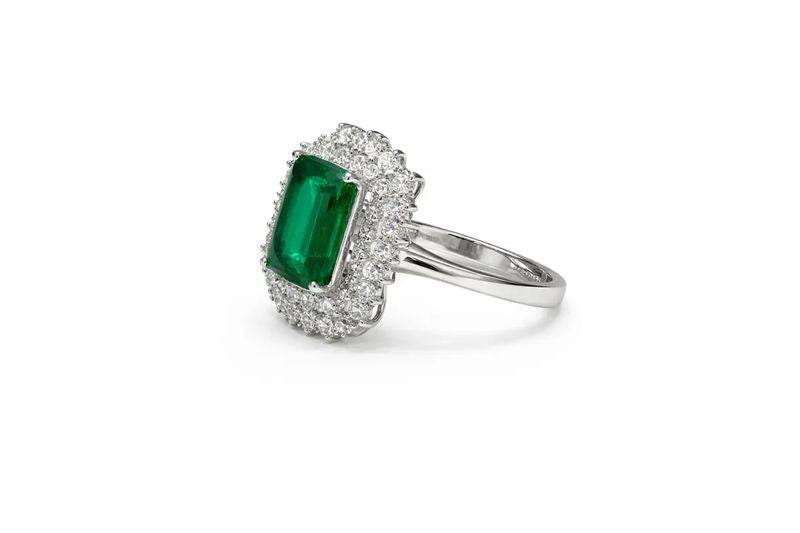 1.35 Carat Green Emerald-Cut Stone Diamond Halo Ring