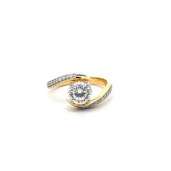 1.424 Carat Round Diamond Swirl Ring in Yellow Gold with Accents