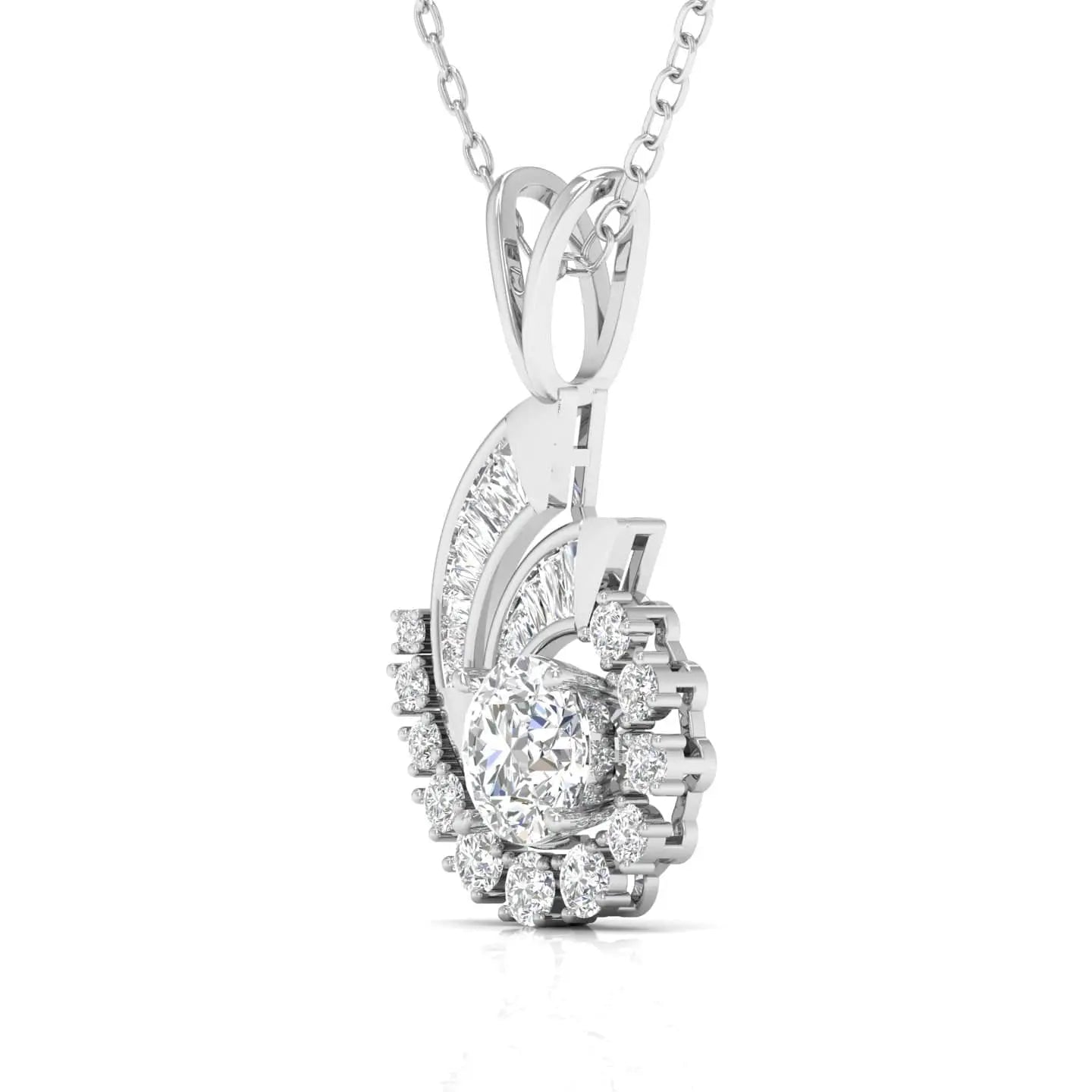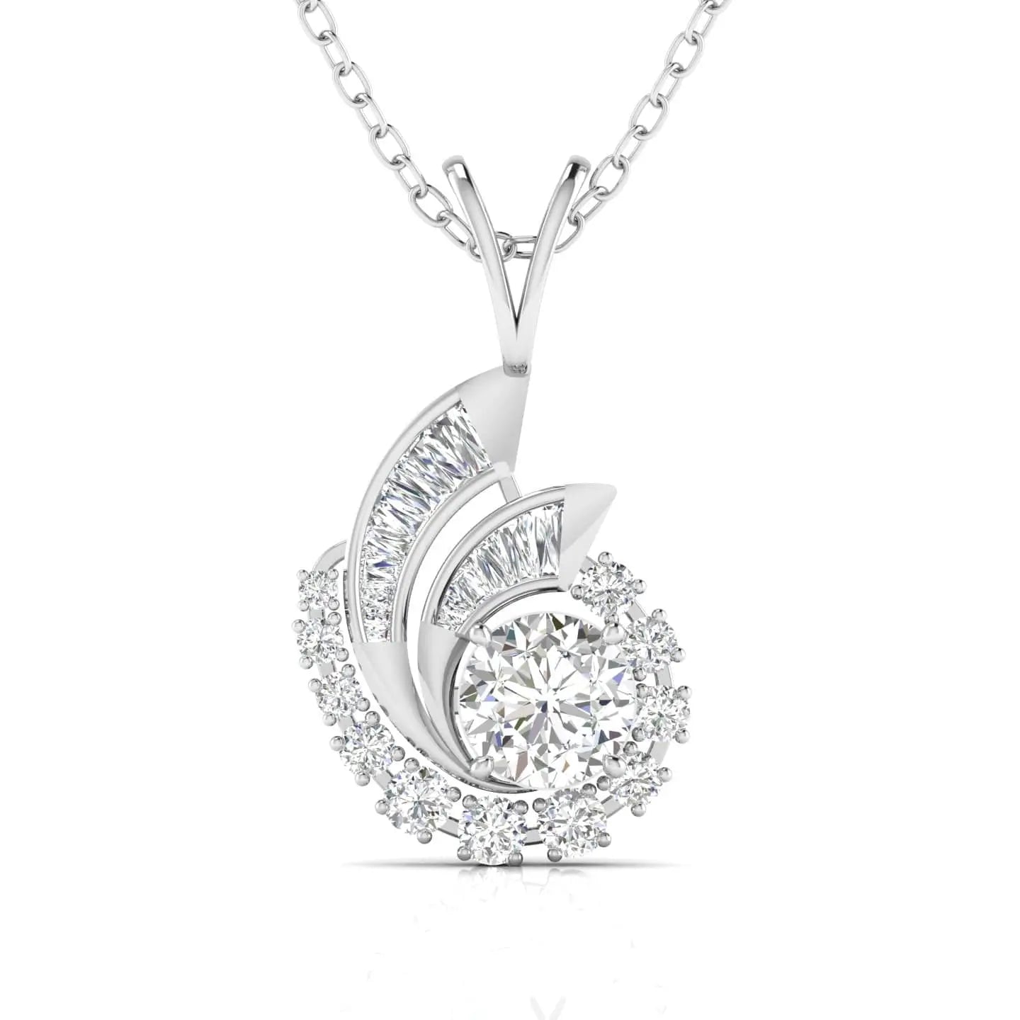 This 1.5 Carat Centre Solitaire Diamond pendant showcases a stunning whirlwind design crafted from ethically sourced lab grown diamonds. Combining timeless elegance with modern sustainability, it offers exceptional brilliance and clarity. Ideal for those who value sophisticated style and conscious luxury.