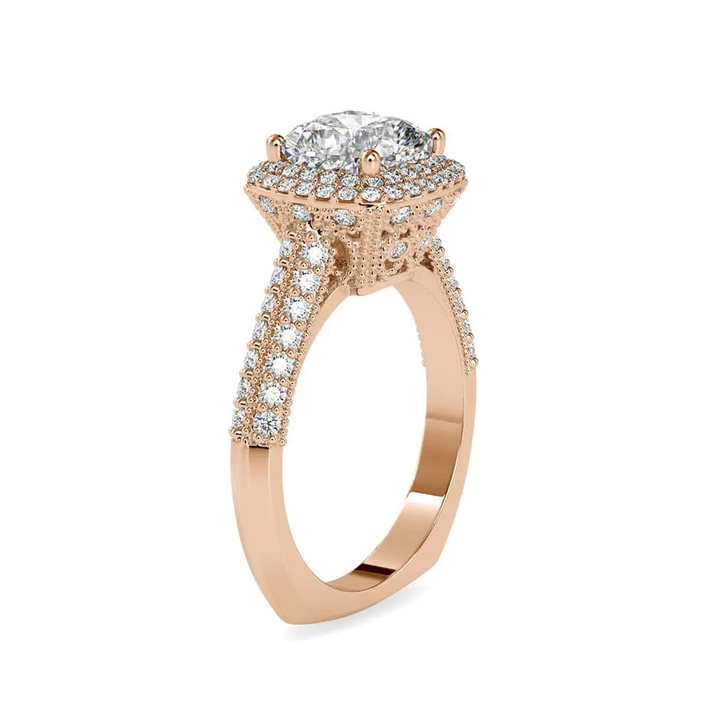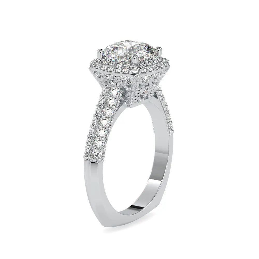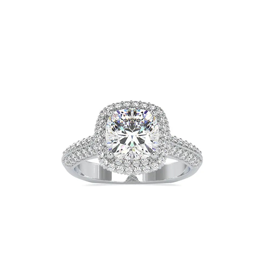 This 1.8 Carat Cushion Shape Diamond Halo Engagement Ring showcases a lab grown diamond renowned for its clarity and ethical origin. The cushion cut is beautifully framed by a halo of smaller diamonds, enhancing its brilliance and timeless appeal. Designed for those who appreciate refined elegance and responsible luxury, this ring is a sophisticated choice for a meaningful celebration.