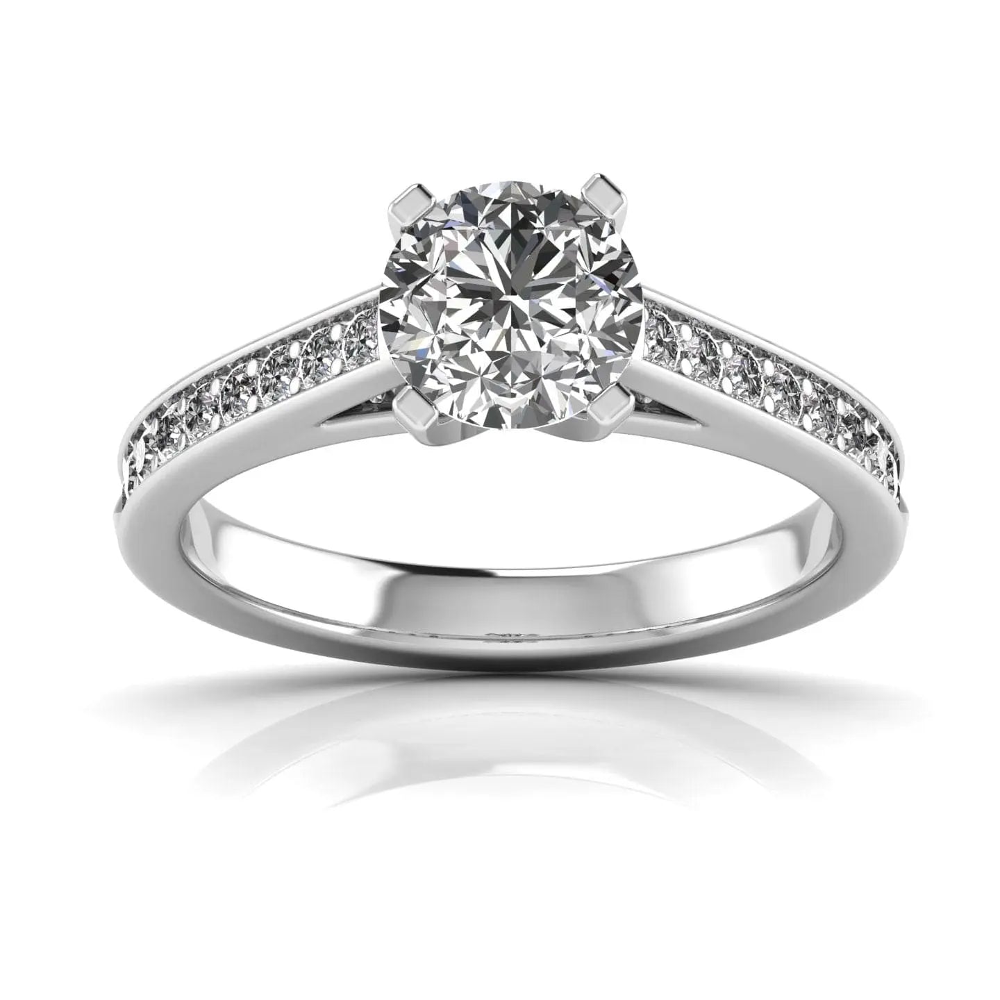 The 1 Carat Aadvin Solitaire Diamond Ring showcases a brilliant lab grown diamond set in a classic solitaire design. This ring offers a sophisticated blend of ethical sourcing and timeless elegance, perfect for those seeking a refined and responsible choice in fine jewelry. Its sparkling clarity and sleek setting make it an exquisite symbol of lasting beauty.