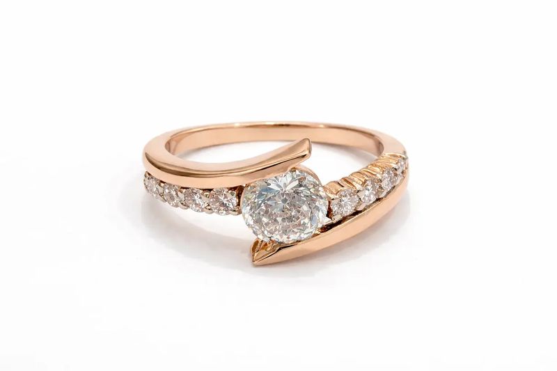 1 Carat Brilliant Diamond Solitaire with Asymmetric Rose Gold Shank