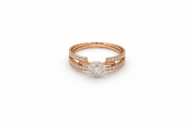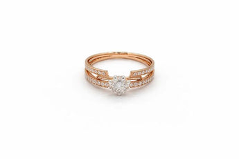 1 Carat Diamond Solitaire with Double-Row Pave Rose Gold Band