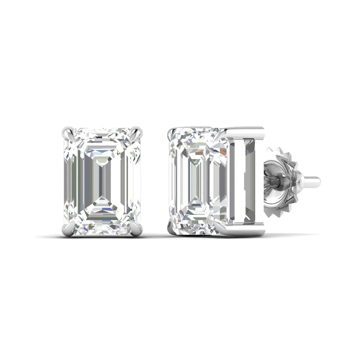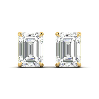 These 1 Carat Each Emerald Cut Diamond Earrings showcase the refined beauty of lab grown diamonds. Expertly cut for brilliance and clarity, these earrings provide a stunning, ethical choice for those who appreciate timeless sophistication. Their elegant design adds a graceful touch to any occasion, combining luxury with responsible craftsmanship.