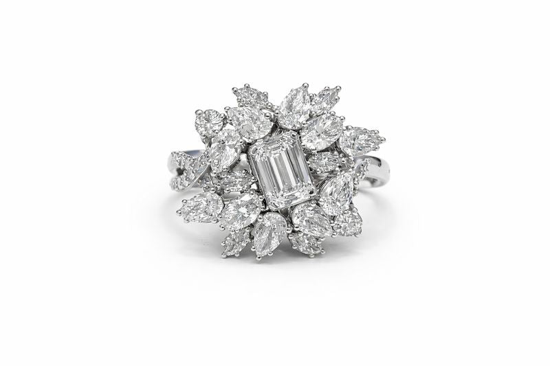 1 Carat Emerald Cut Diamond Cluster Ring with Marquise Accents
