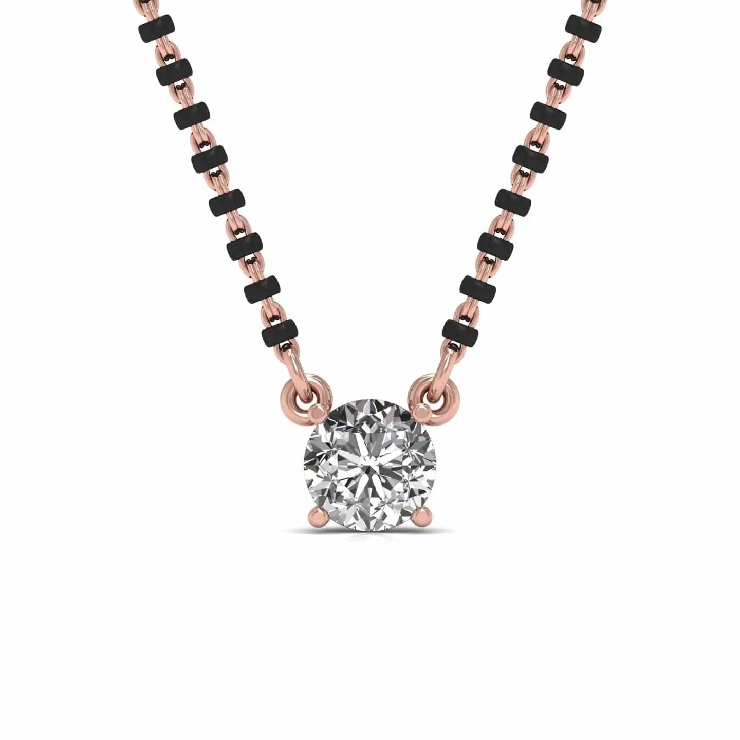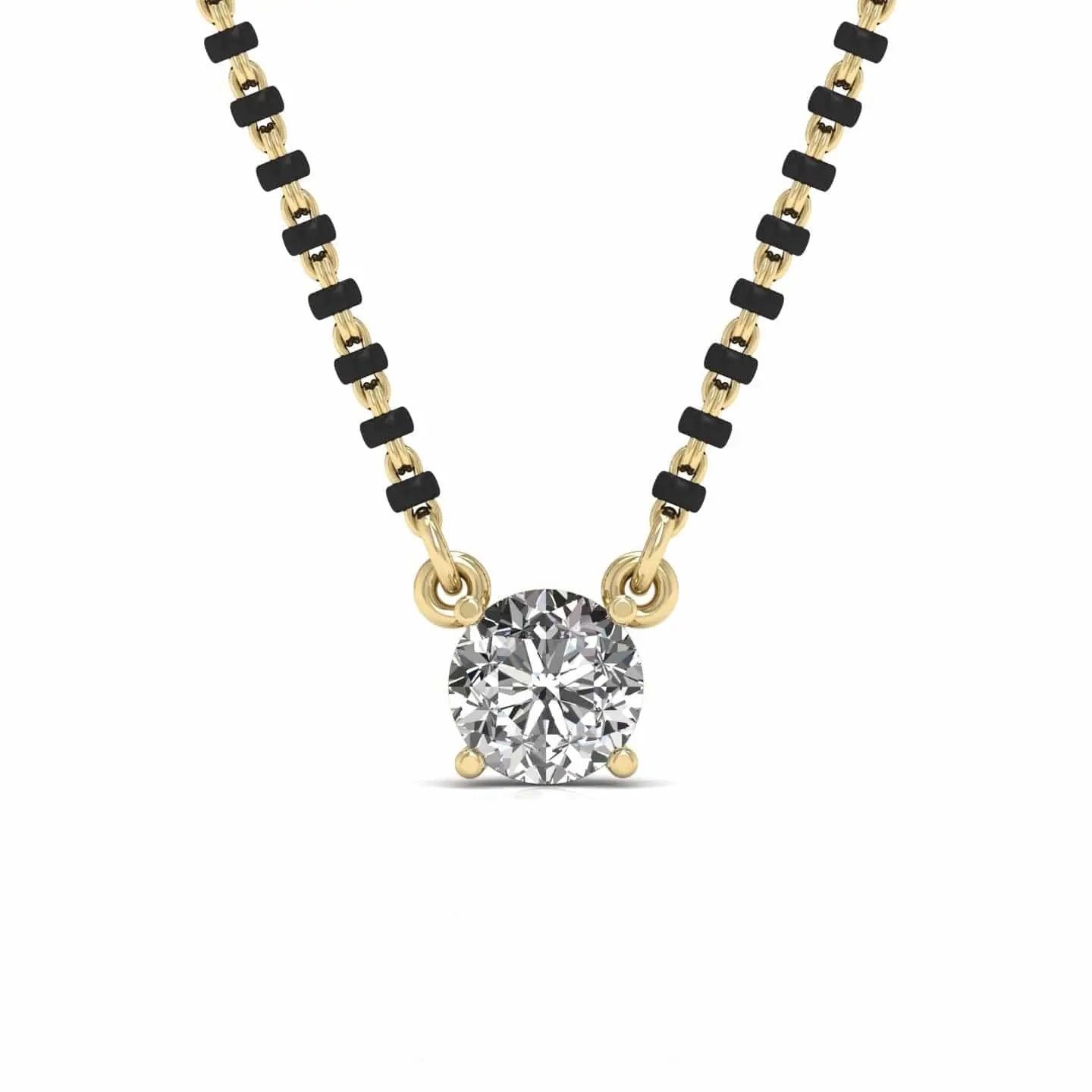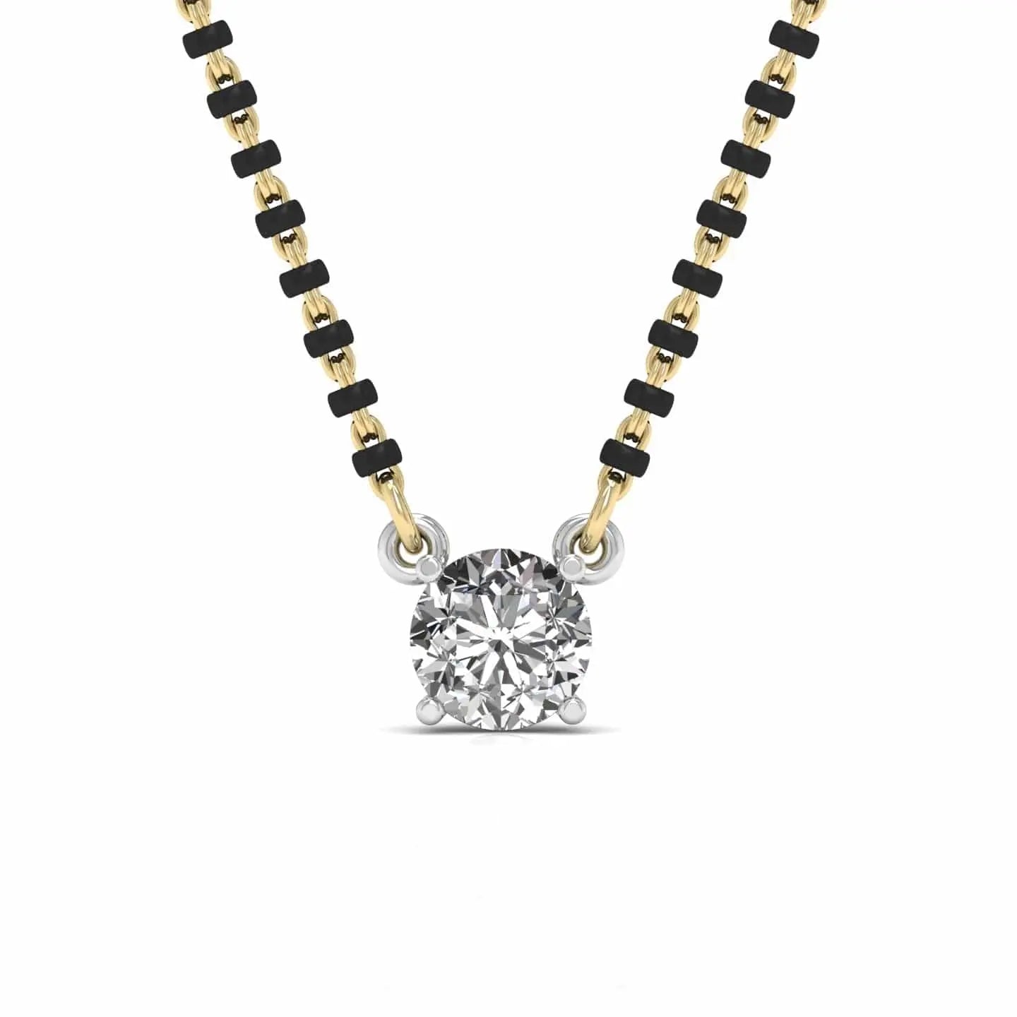 This 1.1 Carat Round Lab Grown Diamond Mangalsutra combines classic tradition with contemporary elegance. Crafted with precision, the lab-grown diamonds offer exceptional sparkle and ethical appeal. Designed to celebrate lasting bonds, this mangalsutra is a sophisticated choice for those who value beauty and sustainability.