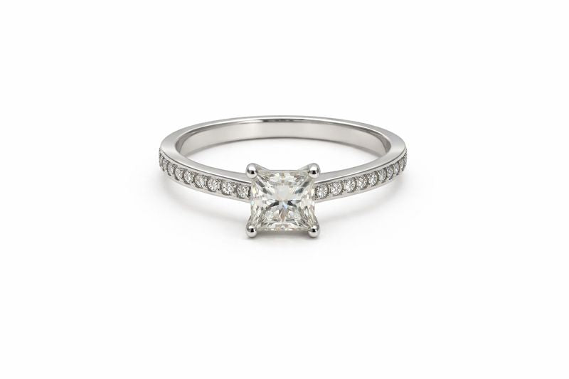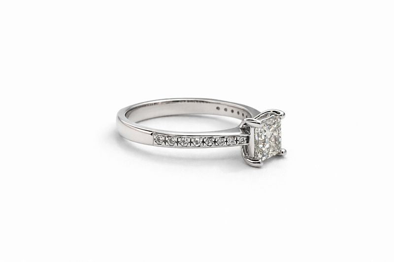 1 Carat Princess Cut Diamond Engagement Ring in 14k White Gold