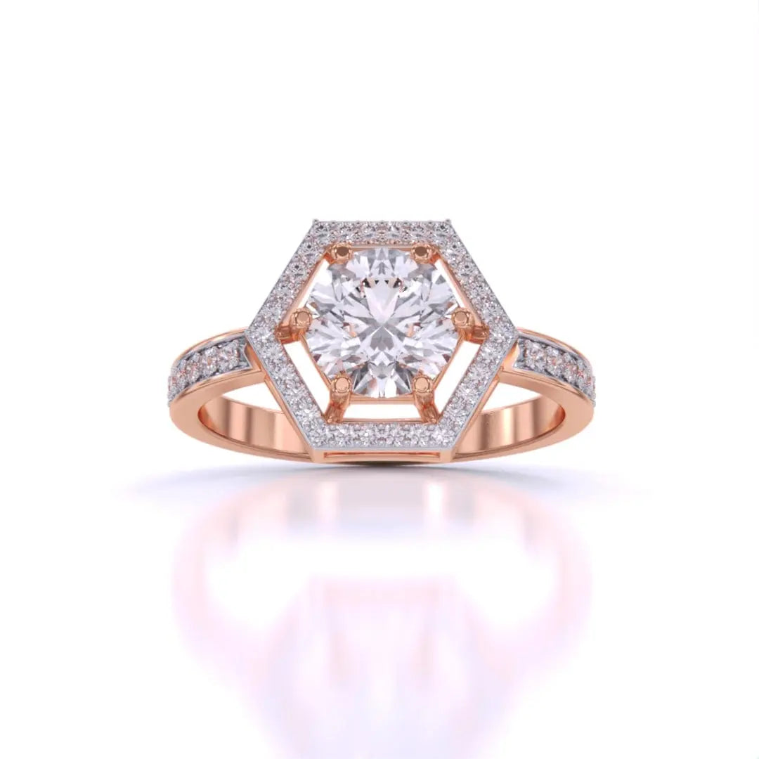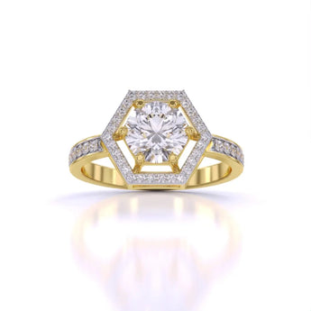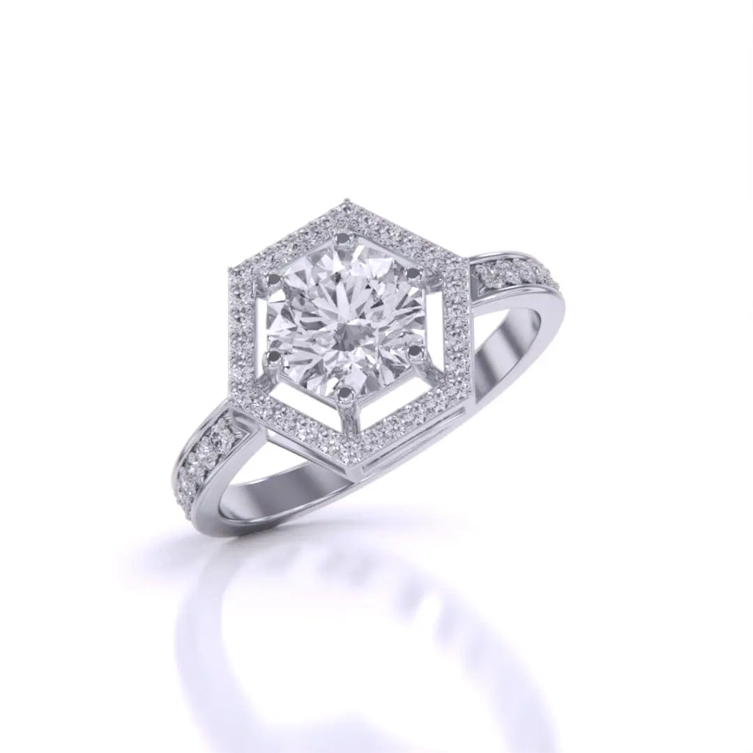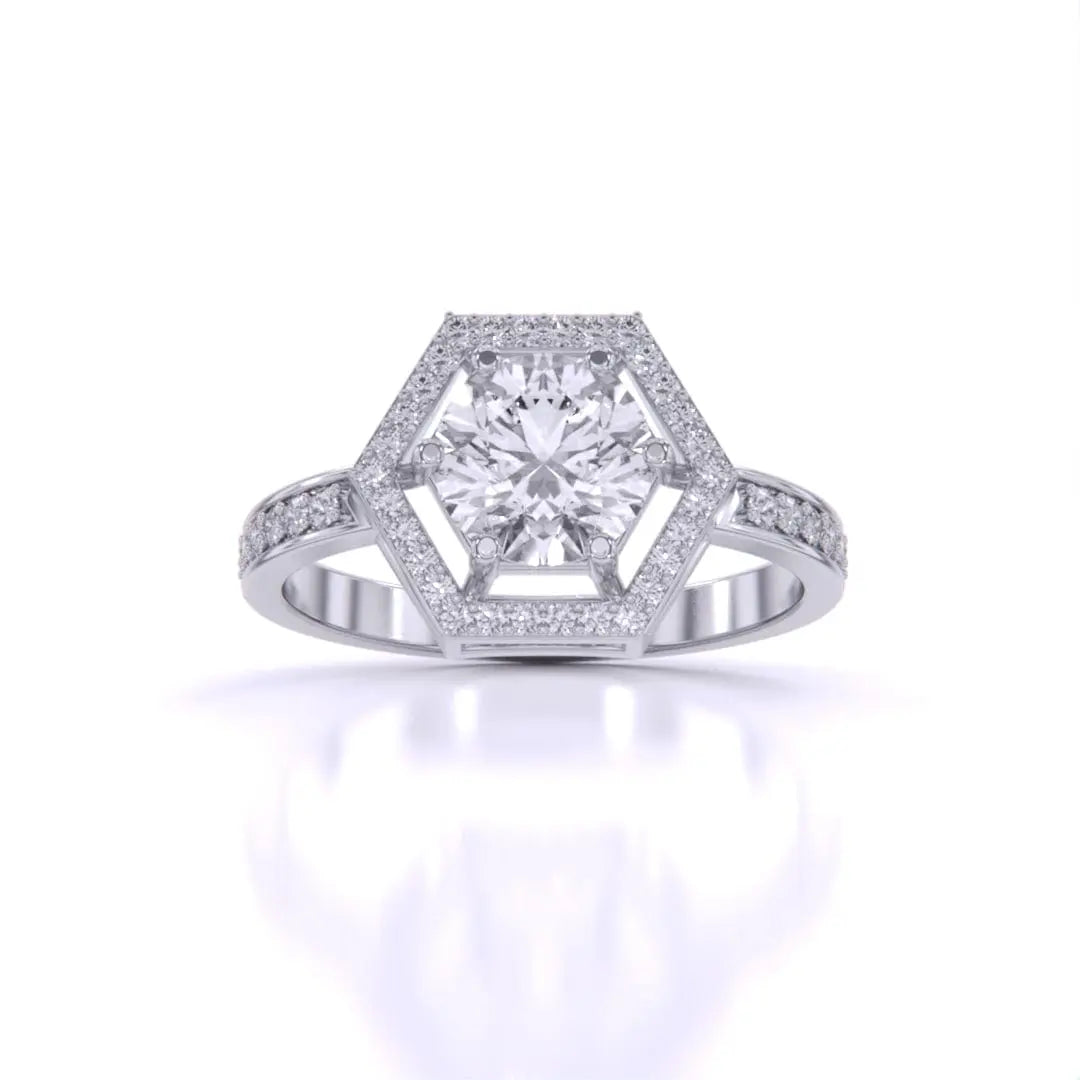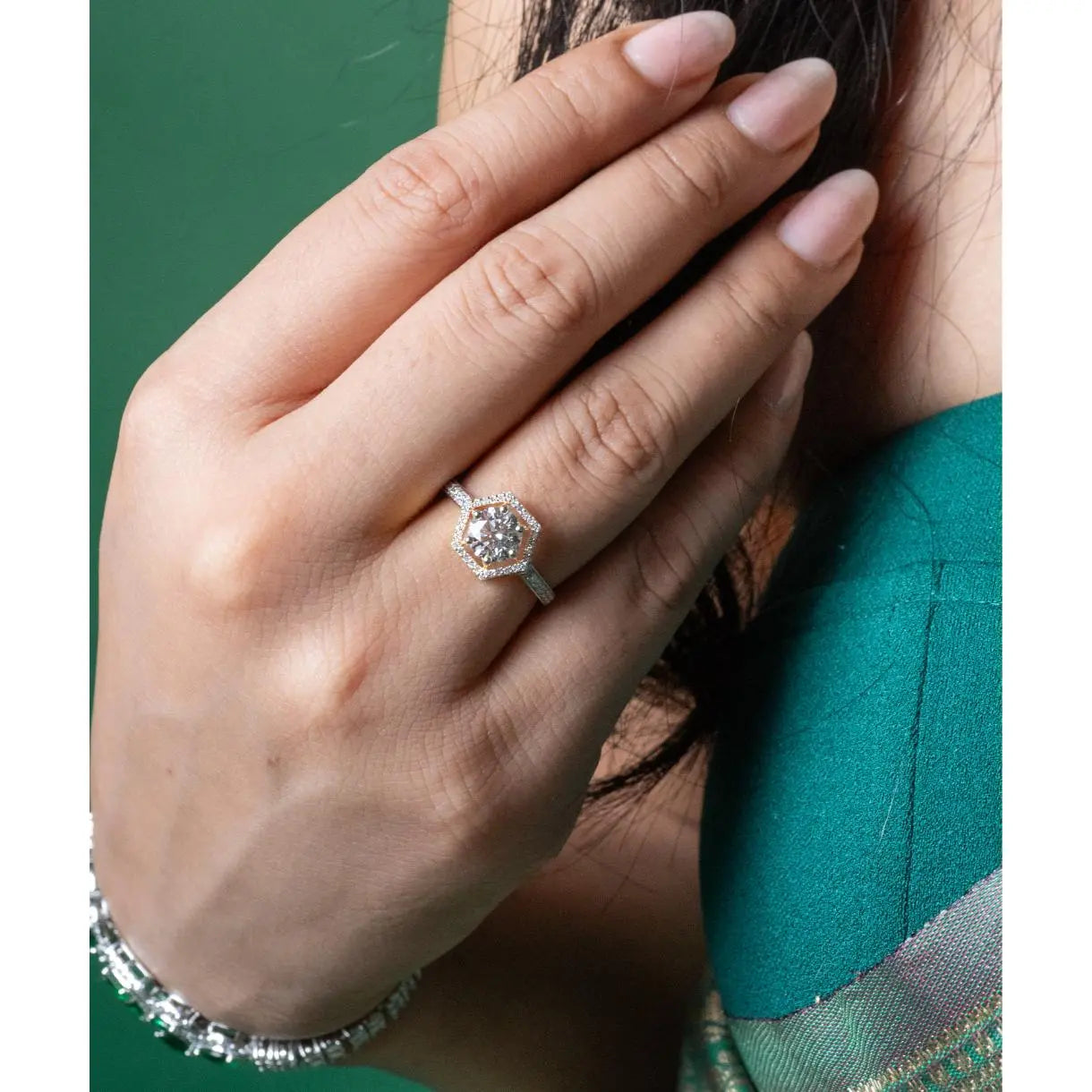 This 1 Carat Lab Grown Diamond Halo Ring features a vintage-inspired hexagonal design, showcasing a brilliant lab-grown center stone surrounded by a striking halo. Merging classic elegance with modern ethics, this lab grown diamond halo ring is a timeless choice for those who value style with a sustainable touch.