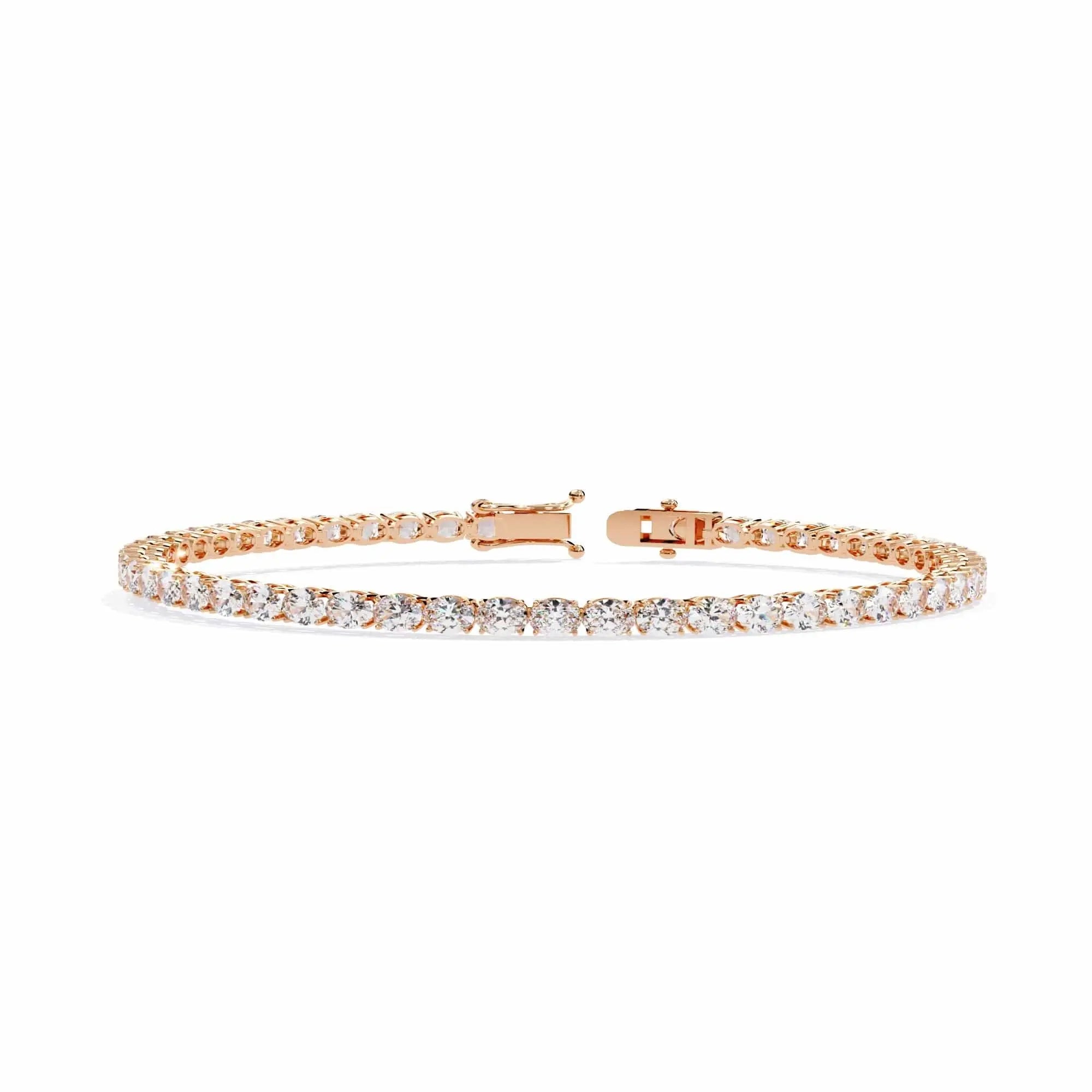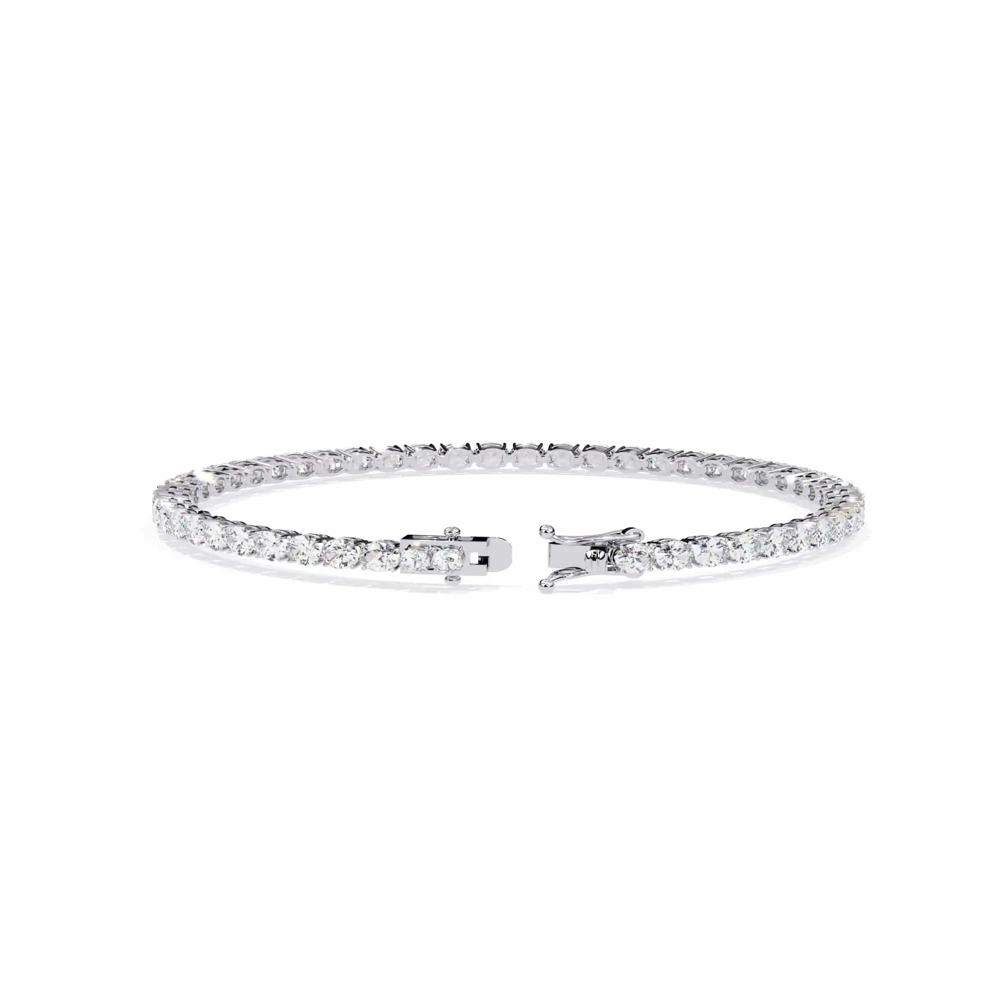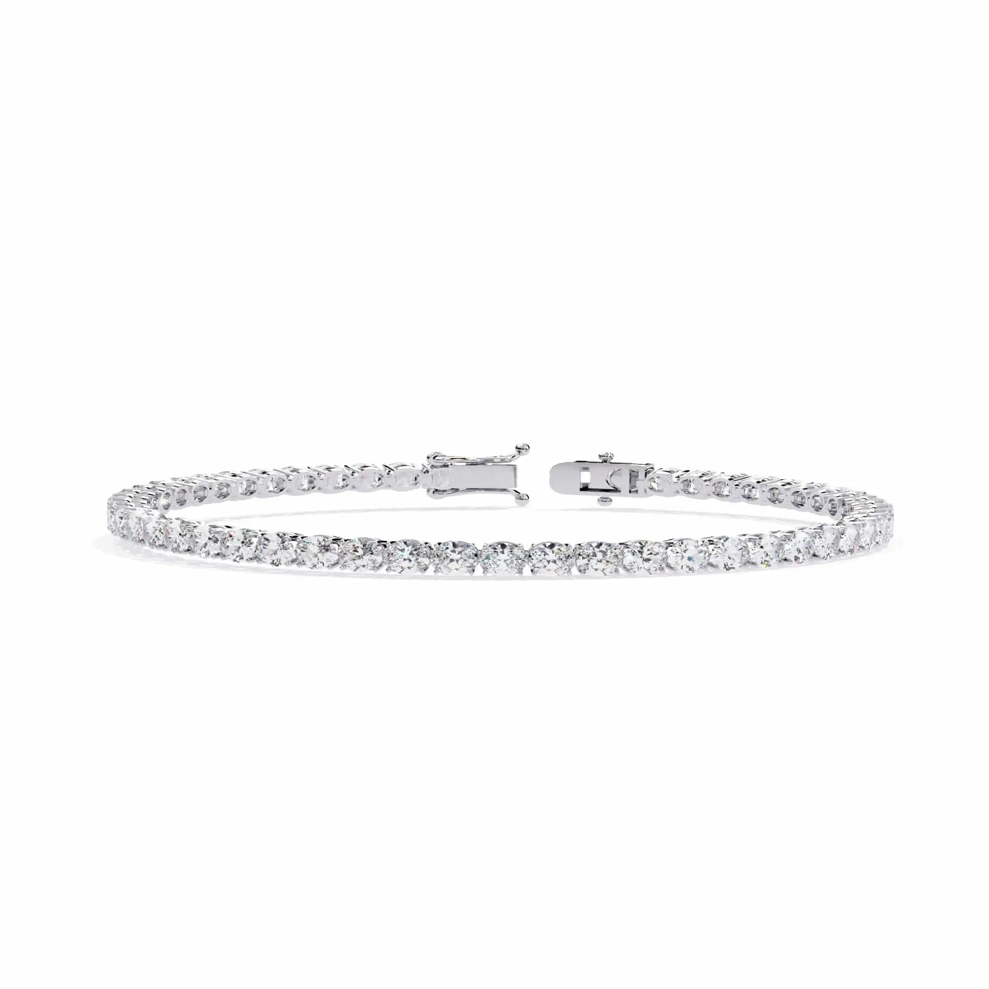 This 12 Pointer Round Lab Grown Diamond Tennis Bracelet features brilliant lab-grown diamonds, combining ethical luxury with timeless elegance. Its sleek, refined design adds a sophisticated touch to any look—perfect for those who value sustainable beauty and fine craftsmanship. A must-have lab grown diamond tennis bracelet for the modern jewellery lover.