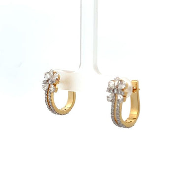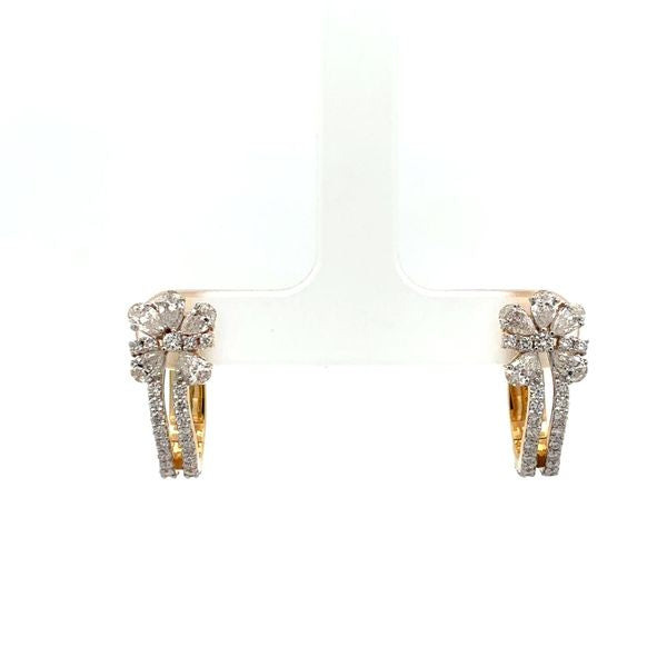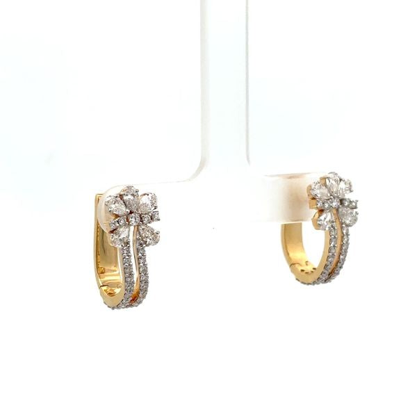 14K Yellow Gold Diamond Flower Huggie Hoops - Side Profile Design