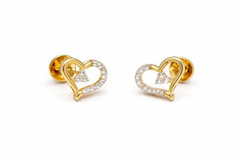 14K Yellow Gold Open Heart Diamond Pav茅 Stud Earrings