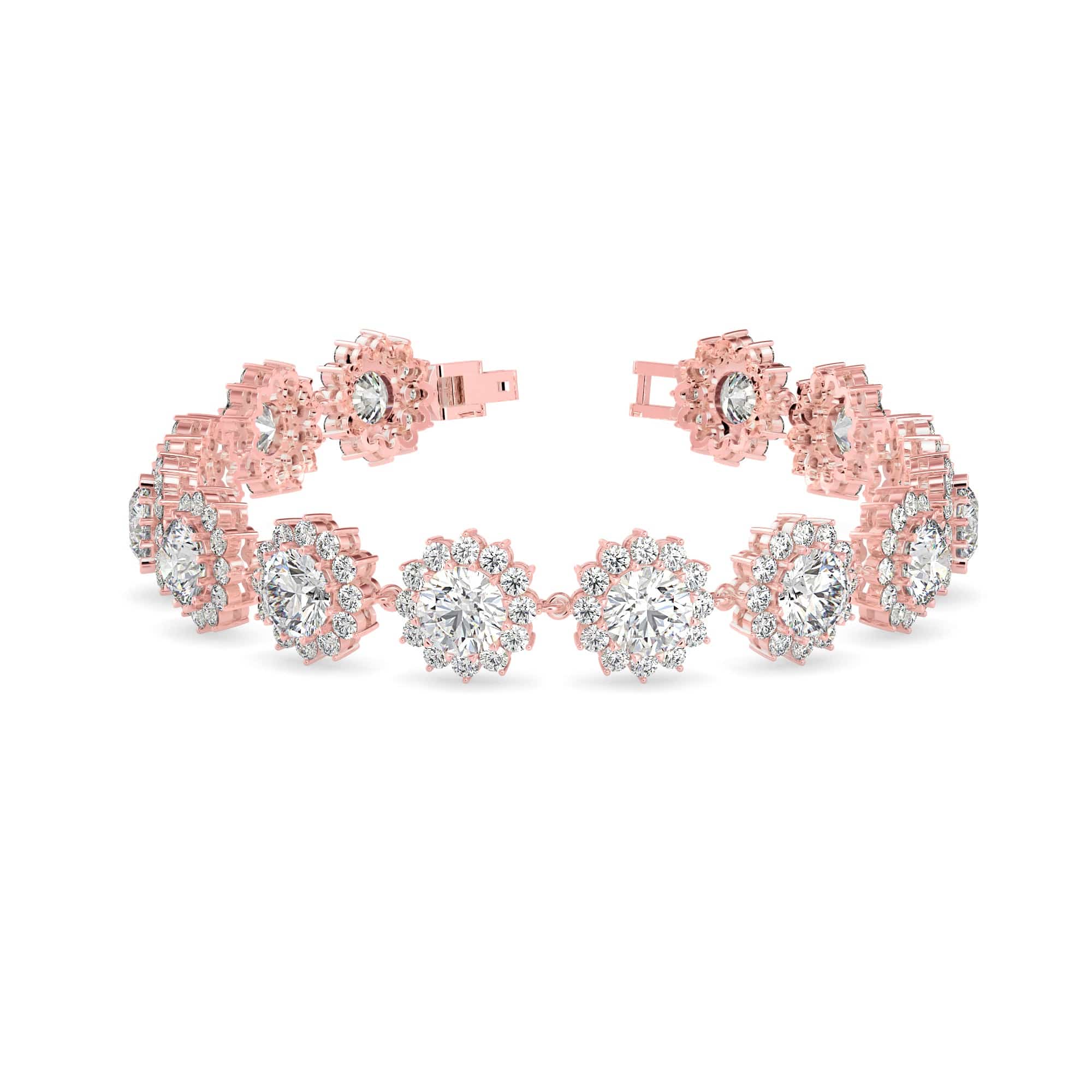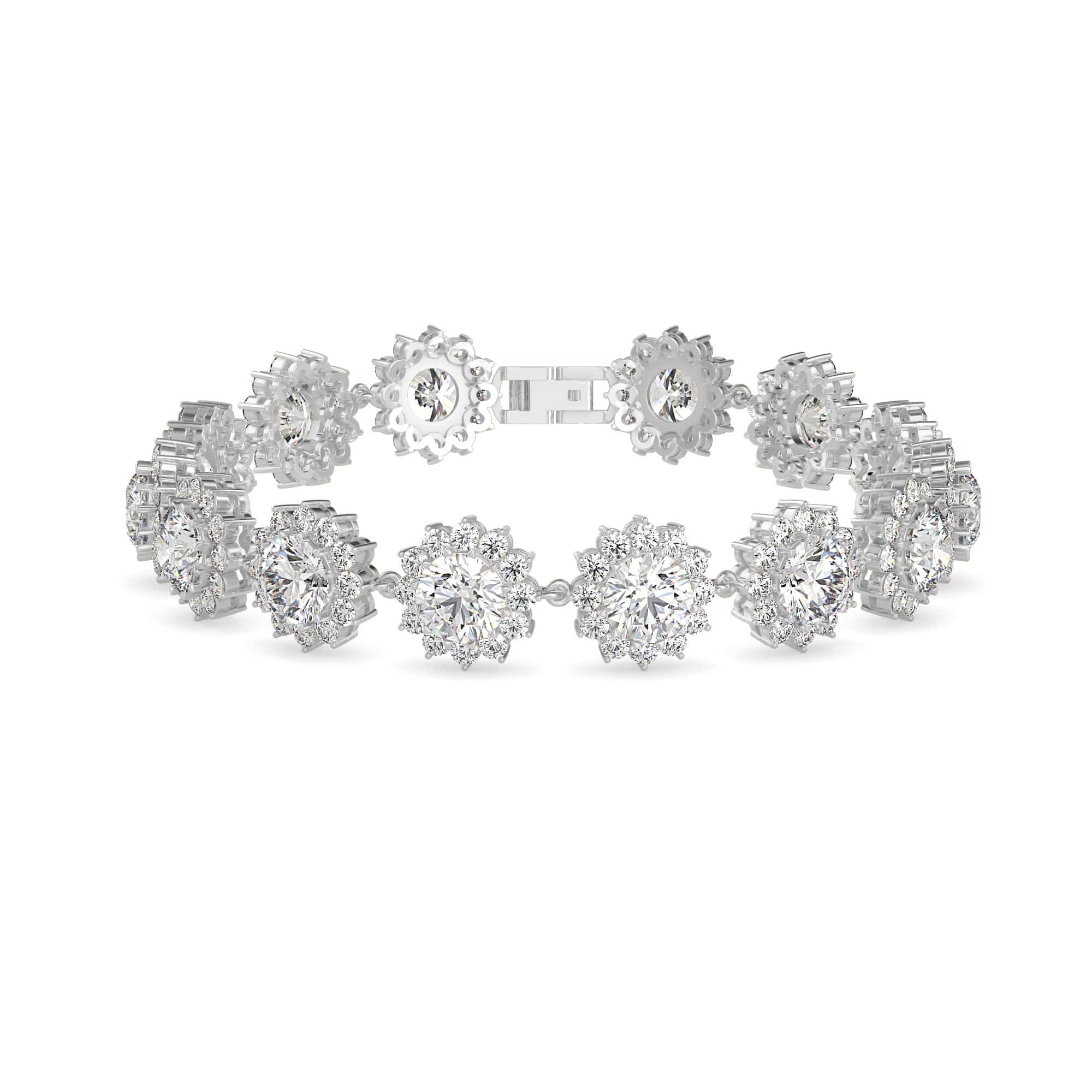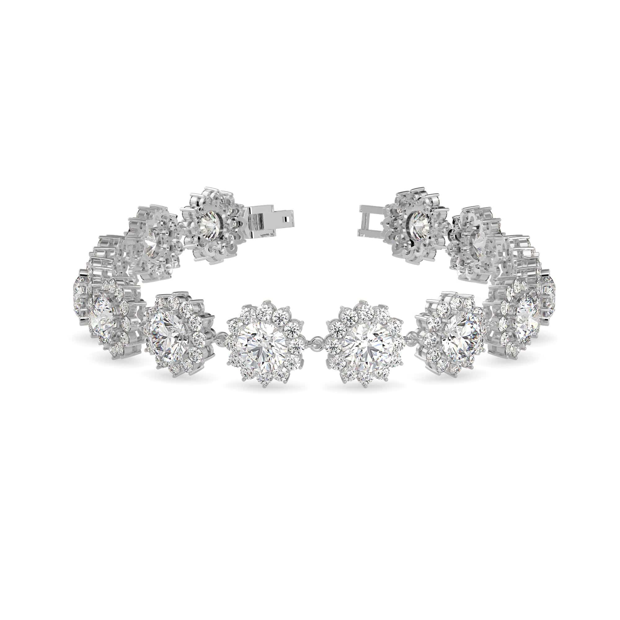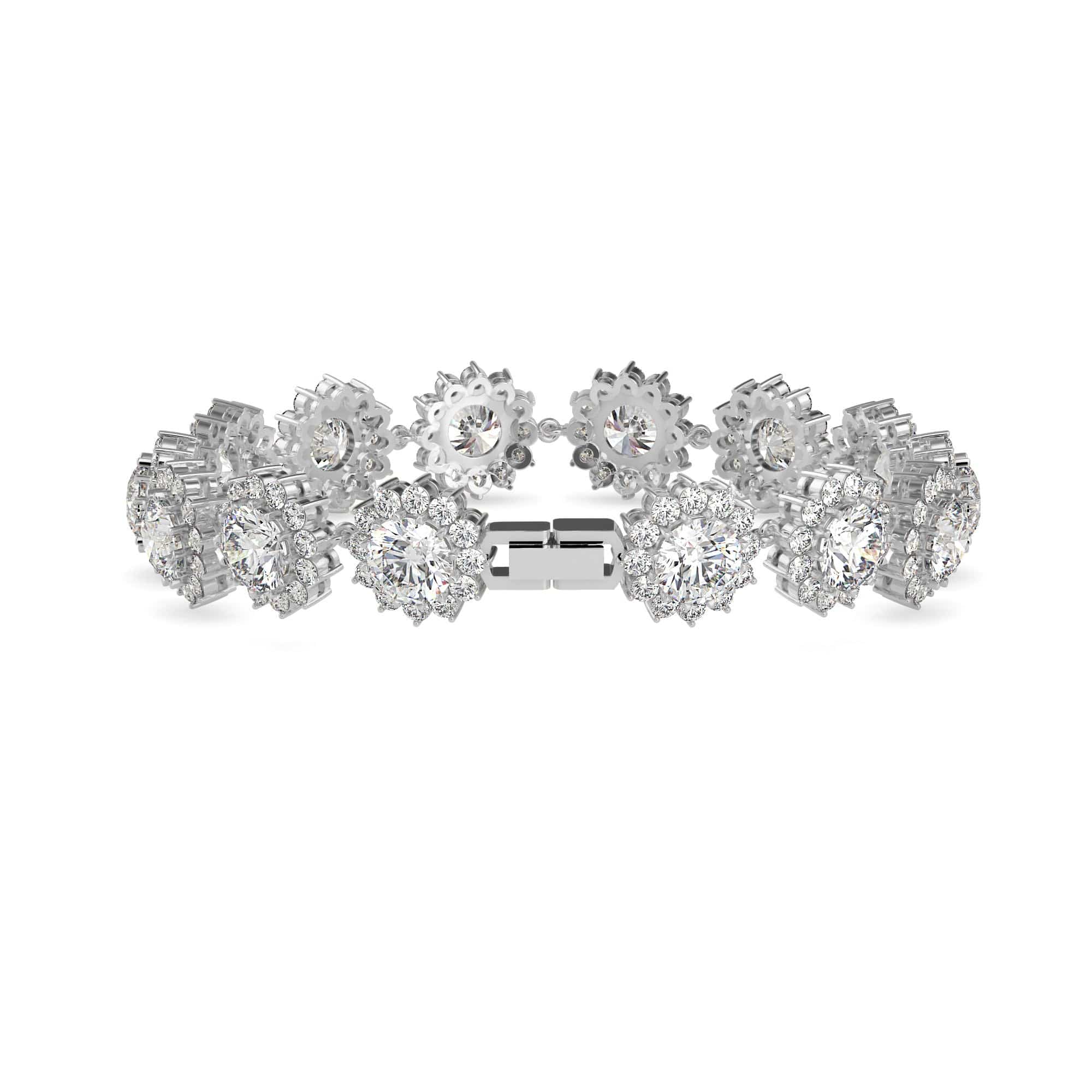 This 16 Carat Round Diamonds Flower Bracelet showcases stunning lab grown diamonds expertly crafted into an elegant floral design. Combining sustainable luxury with refined sophistication, it offers a radiant sparkle that complements any occasion with grace and style.
