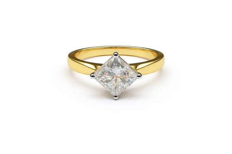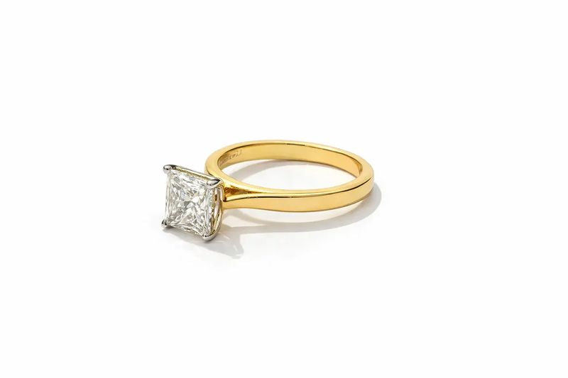 2.09 Carat Princess Cut Diamond Yellow Gold Solitaire Ring