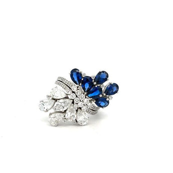 2.190 Carat Blue Sapphire and Diamond Floral Cluster Ring