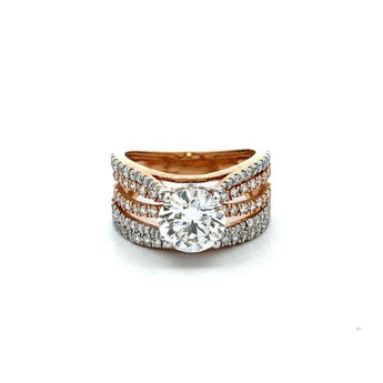 2.190 Carat Round Cut Diamond Ring with Layered Pavé Bands