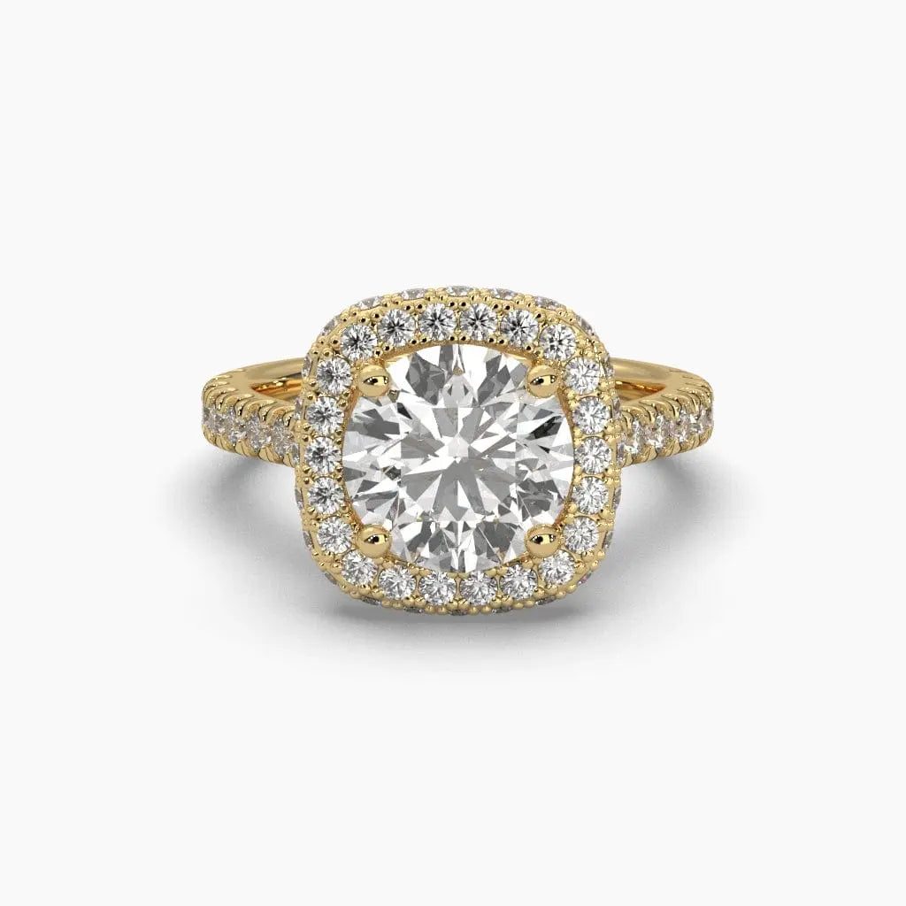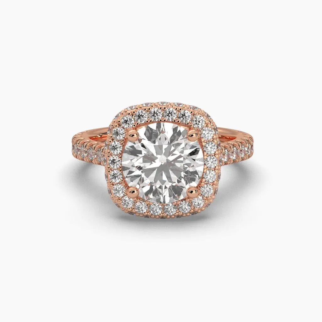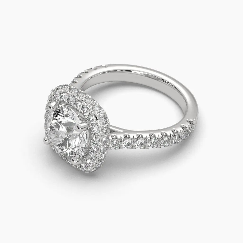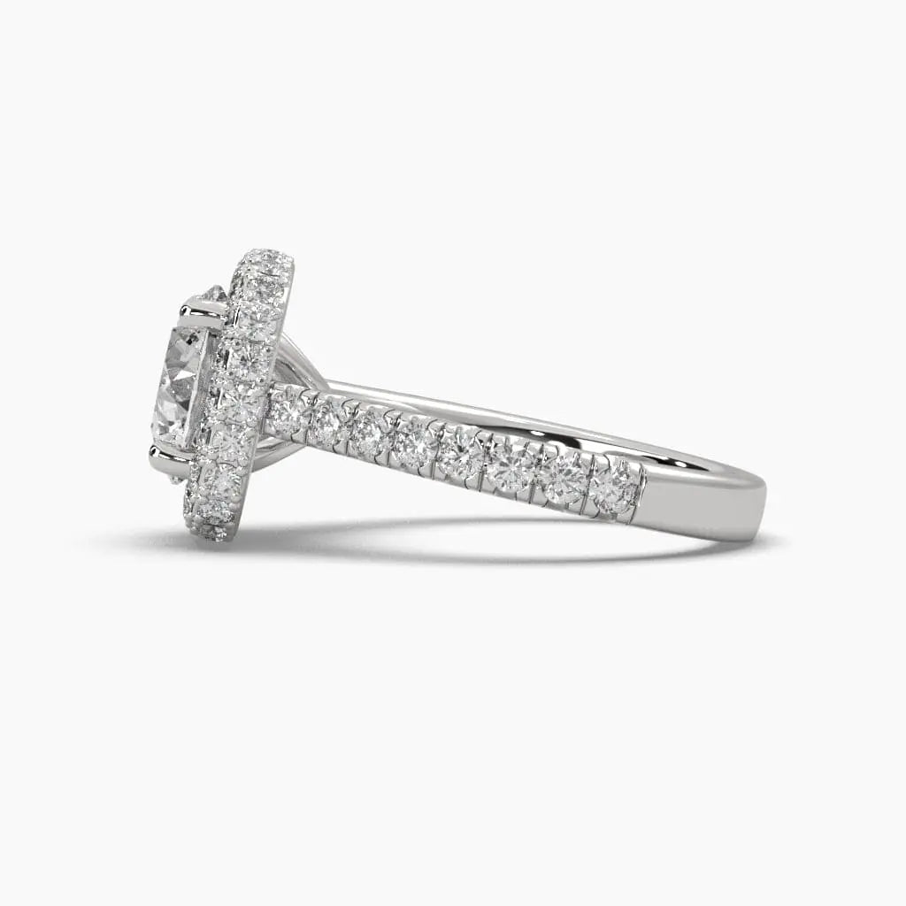 This 2.25 Carat Pavé Band Halo Solitaire Ring showcases a brilliant lab grown diamond, expertly set to maximize sparkle and elegance. The pavé band and halo design create a refined silhouette, perfect for those seeking a sophisticated and ethical choice in fine jewelry. Ideal for celebrating special moments with timeless beauty and conscious craftsmanship.