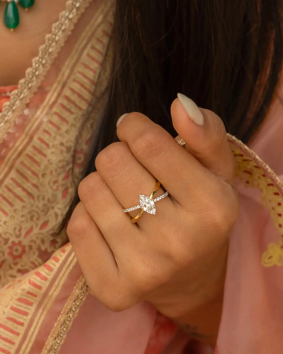 This 2.5 Carat Marquise Diamond Solitaire Ring features a stunning lab grown diamond, expertly cut to enhance its brilliance and elegance. The marquise shape not only creates a striking visual impact but also elegantly elongates the finger for a refined look. Crafted with precision, this ring offers a responsible choice without compromising on luxury or style, ideal for those seeking timeless sophistication with ethical integrity.