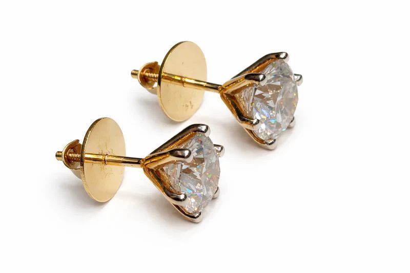 2.64 Carat Each Round Brilliant Diamond Earrings