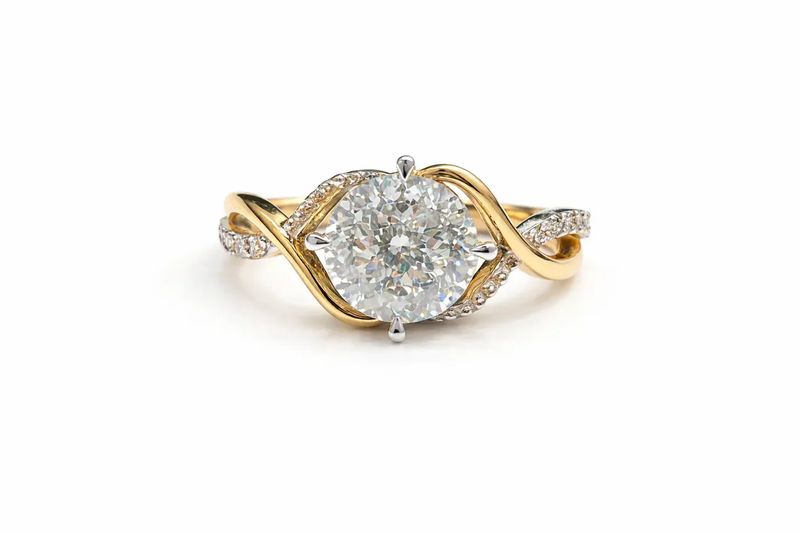 2.707 Carat Round Solitaire Diamond Ring with Elegant Wave Gold Design