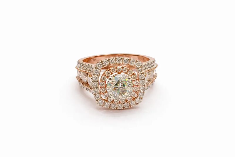 2.74 Carat Round Diamond Double Halo Engagement Ring
