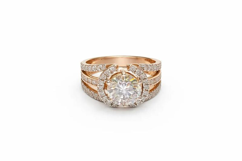 2.9 Carat Round Brilliant Diamond Halo Ring in 14K Rose Gold