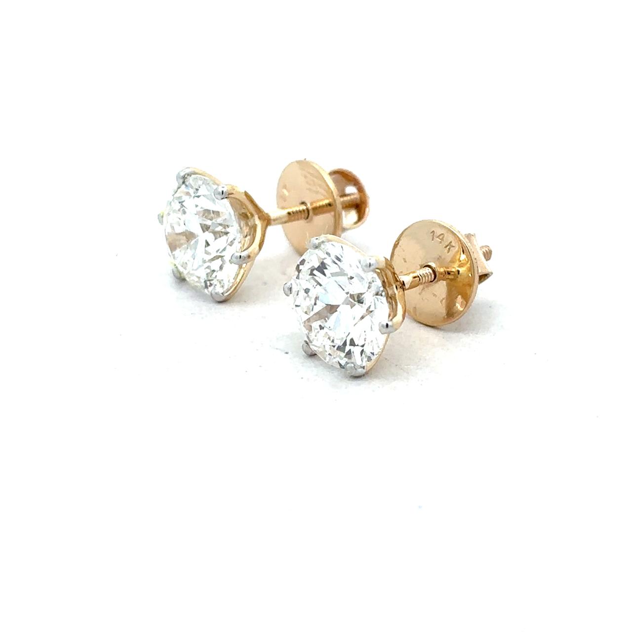 2 Carat Each Minimalist Brilliant Solitaire Studs