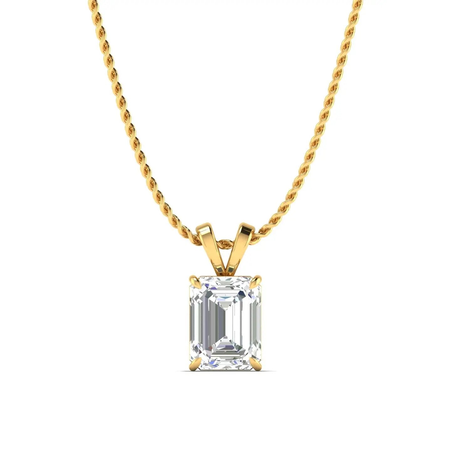 This 2 Carat Emerald Cut Lab Grown Diamond Pendant in gold combines timeless elegance with modern sustainability. The emerald cut highlights the diamond’s clarity and brilliance, creating a refined accessory that complements any sophisticated style. Crafted with ethical precision, this pendant offers a luxurious statement piece that reflects both beauty and responsibility.