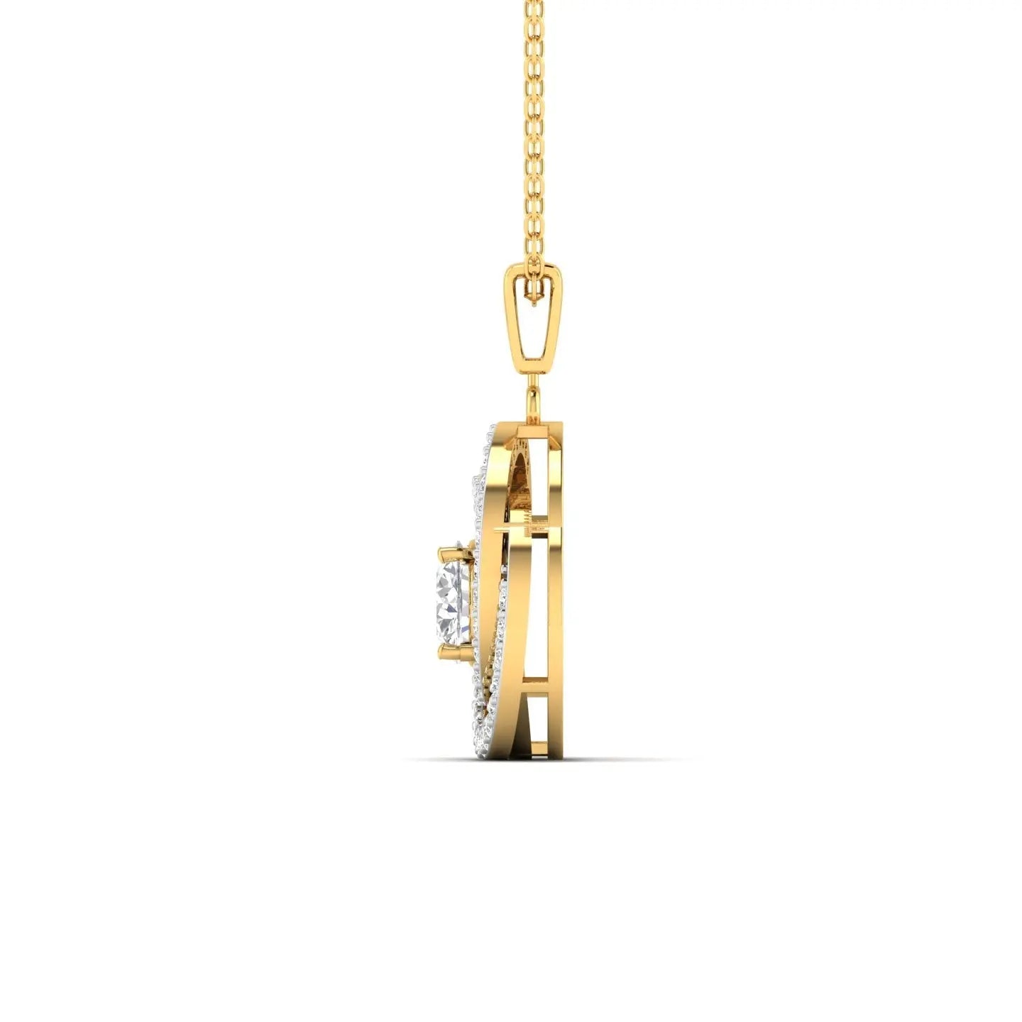 This 2 Carat Diamond Halo Gold Pendant showcases a brilliant lab grown diamond encircled by a delicate halo of smaller stones, all set in elegant gold. Combining ethical craftsmanship with timeless design, it offers a sophisticated sparkle that enhances any outfit with grace and refinement.
