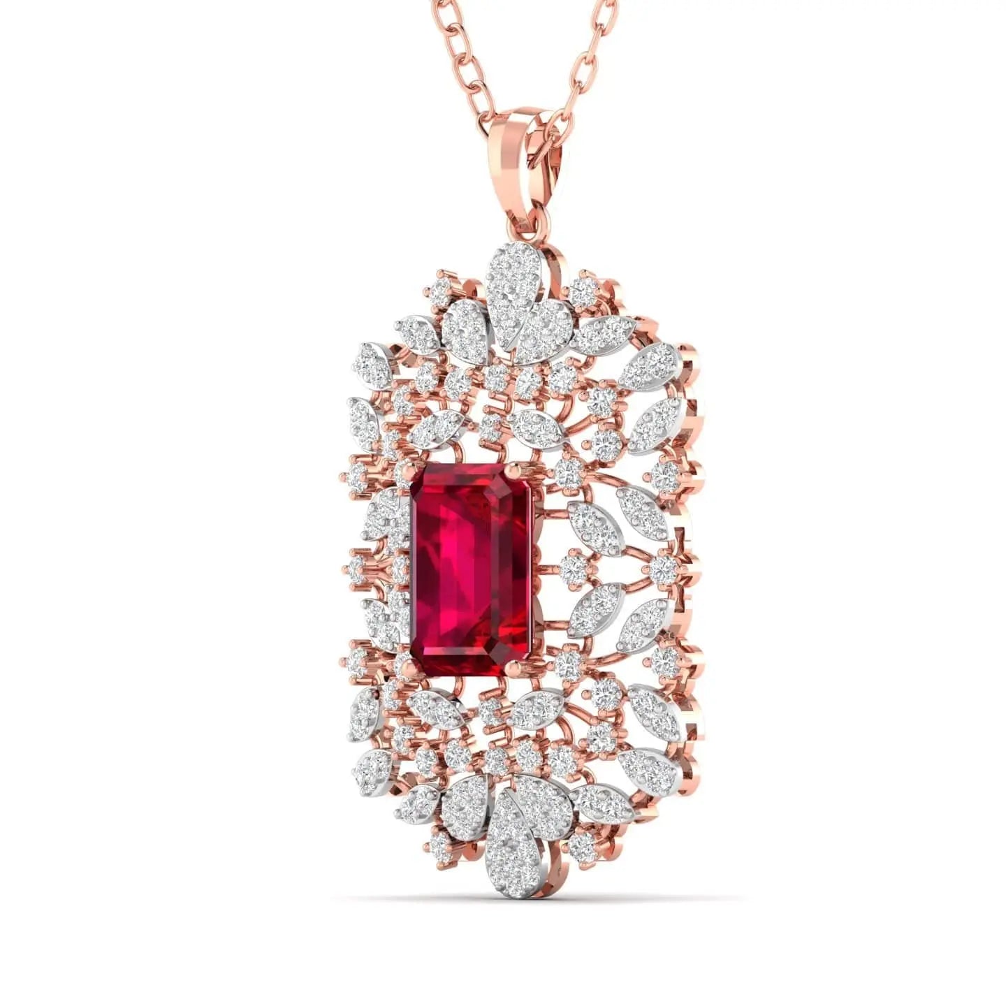 Discover timeless elegance with this Large Ruby Cocktail Pendant, featuring a dazzling lab grown diamond that enhances the rich ruby centerpiece. Designed for those who appreciate refined sophistication, this pendant offers a brilliant sparkle and a luxurious touch, perfect for elevating your evening attire with grace and style.