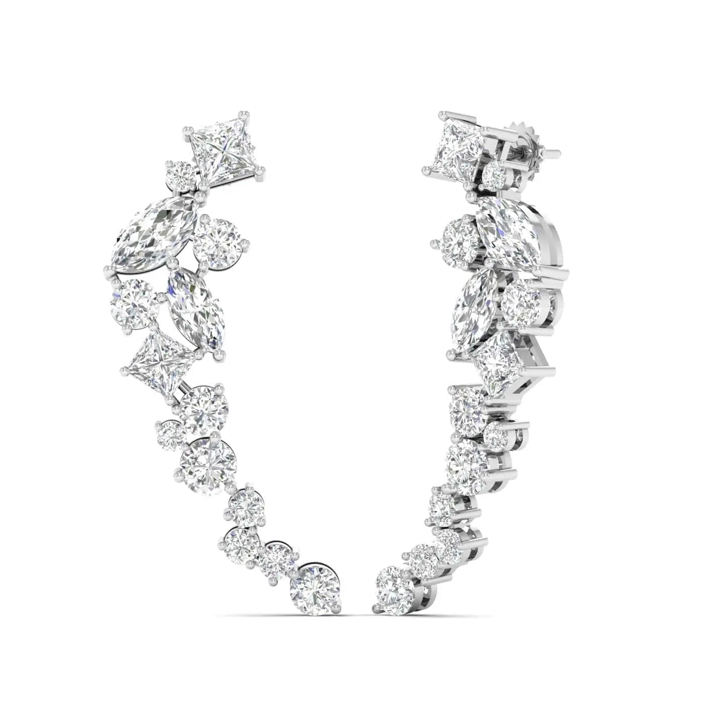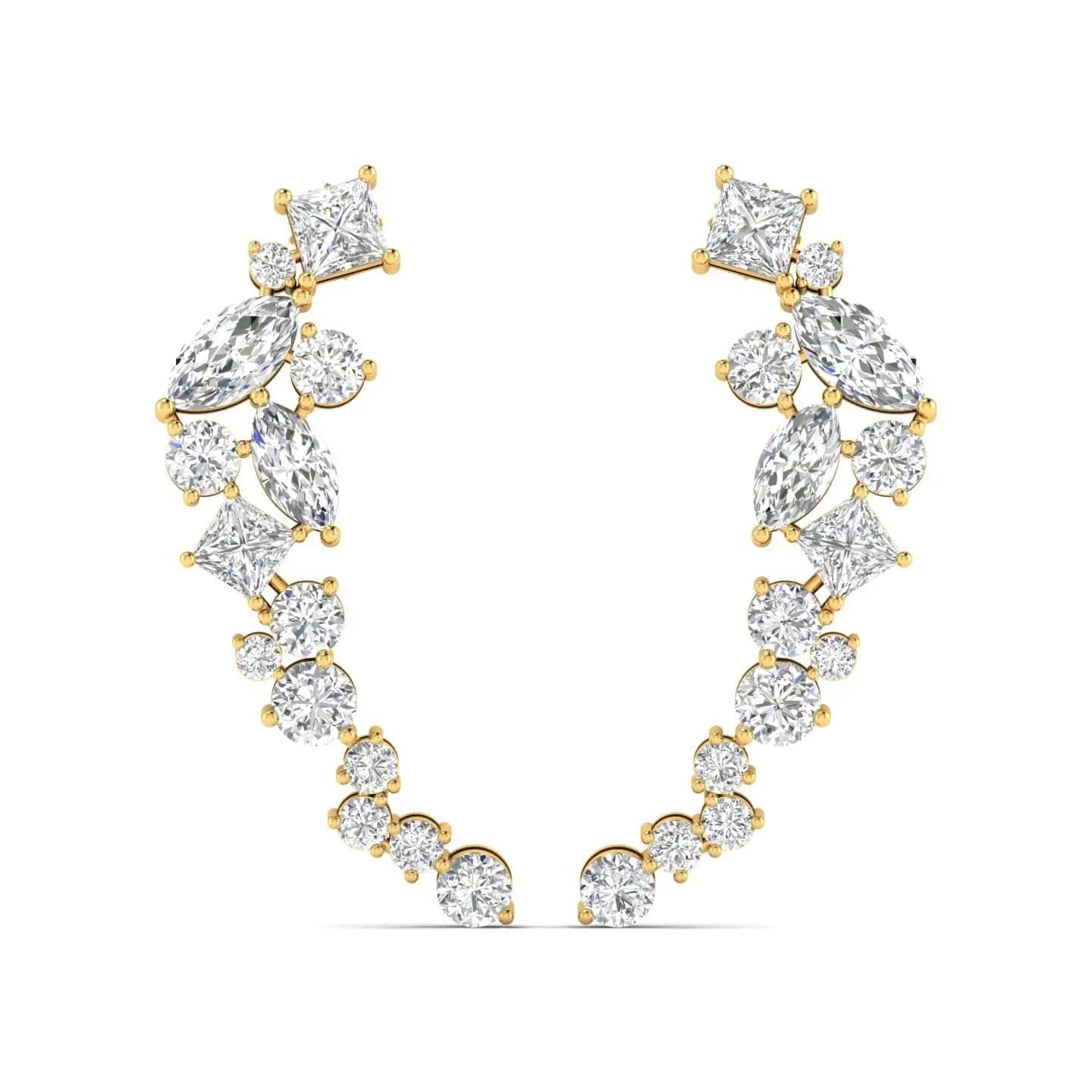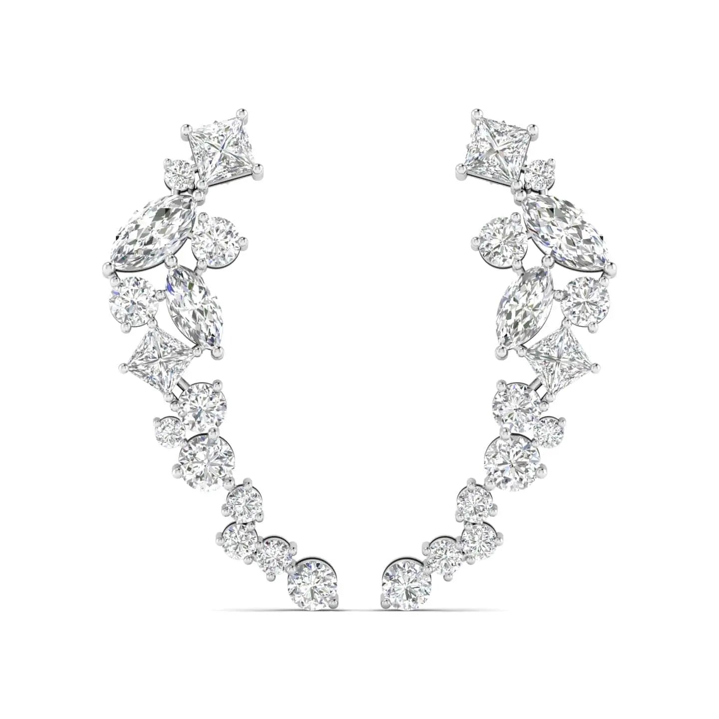 These Multi-Shape Diamond Climber Earrings showcase expertly crafted lab grown diamonds arranged to highlight their unique brilliance. Designed to elegantly trace the contour of your ear, they combine contemporary artistry with ethical craftsmanship, perfect for sophisticated occasions or everyday luxury.