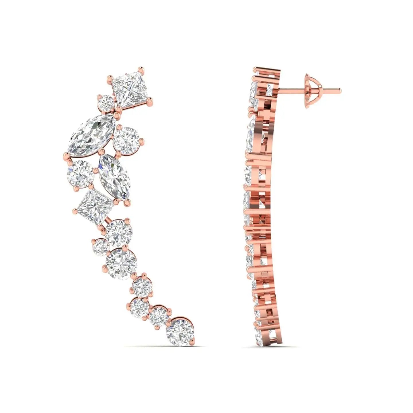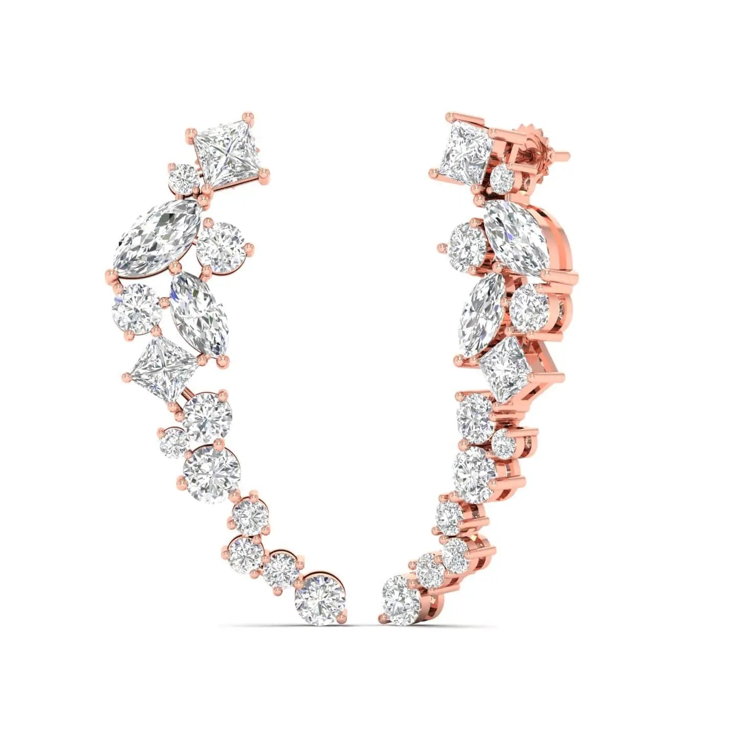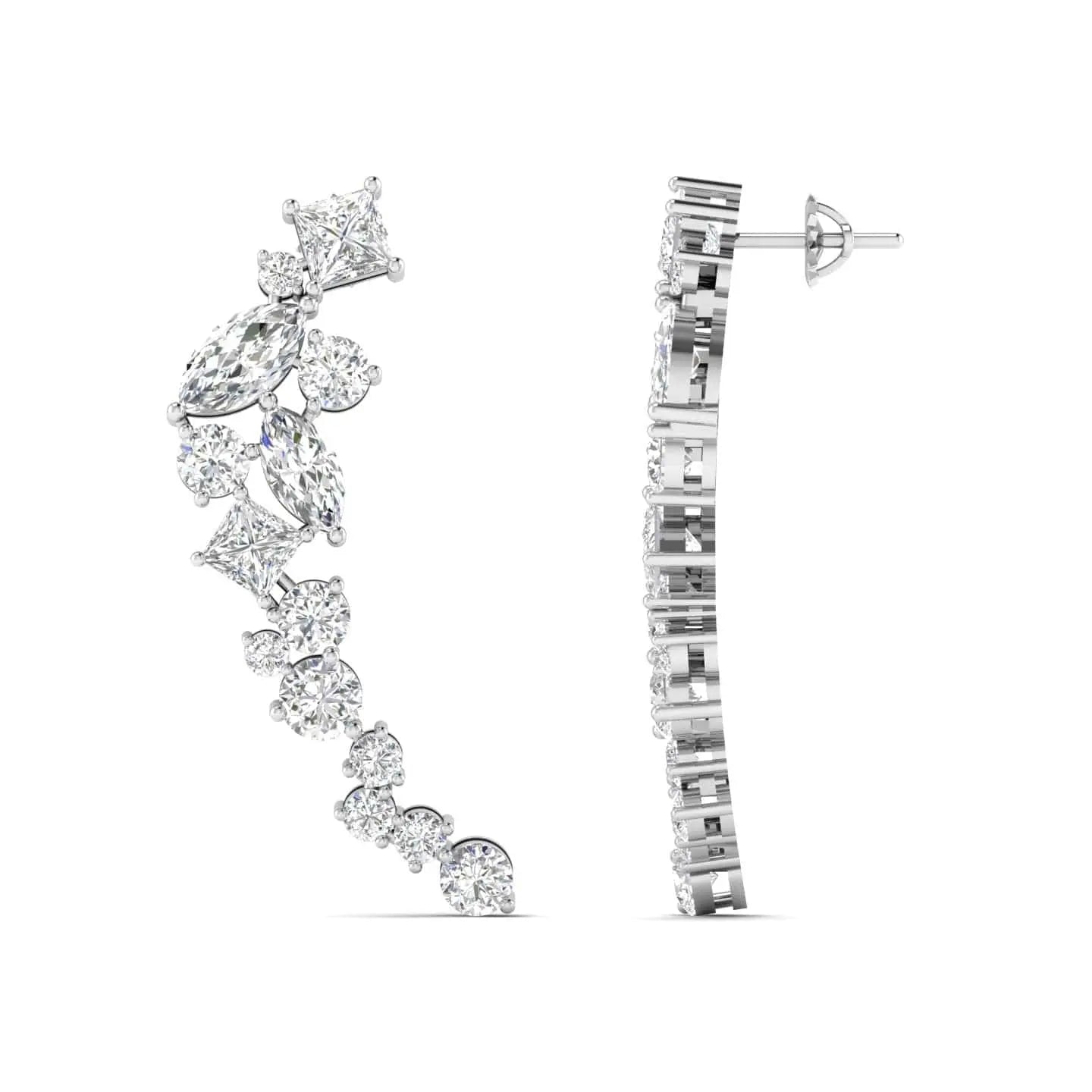 These Multi-Shape Diamond Climber Earrings showcase expertly crafted lab grown diamonds arranged to highlight their unique brilliance. Designed to elegantly trace the contour of your ear, they combine contemporary artistry with ethical craftsmanship, perfect for sophisticated occasions or everyday luxury.