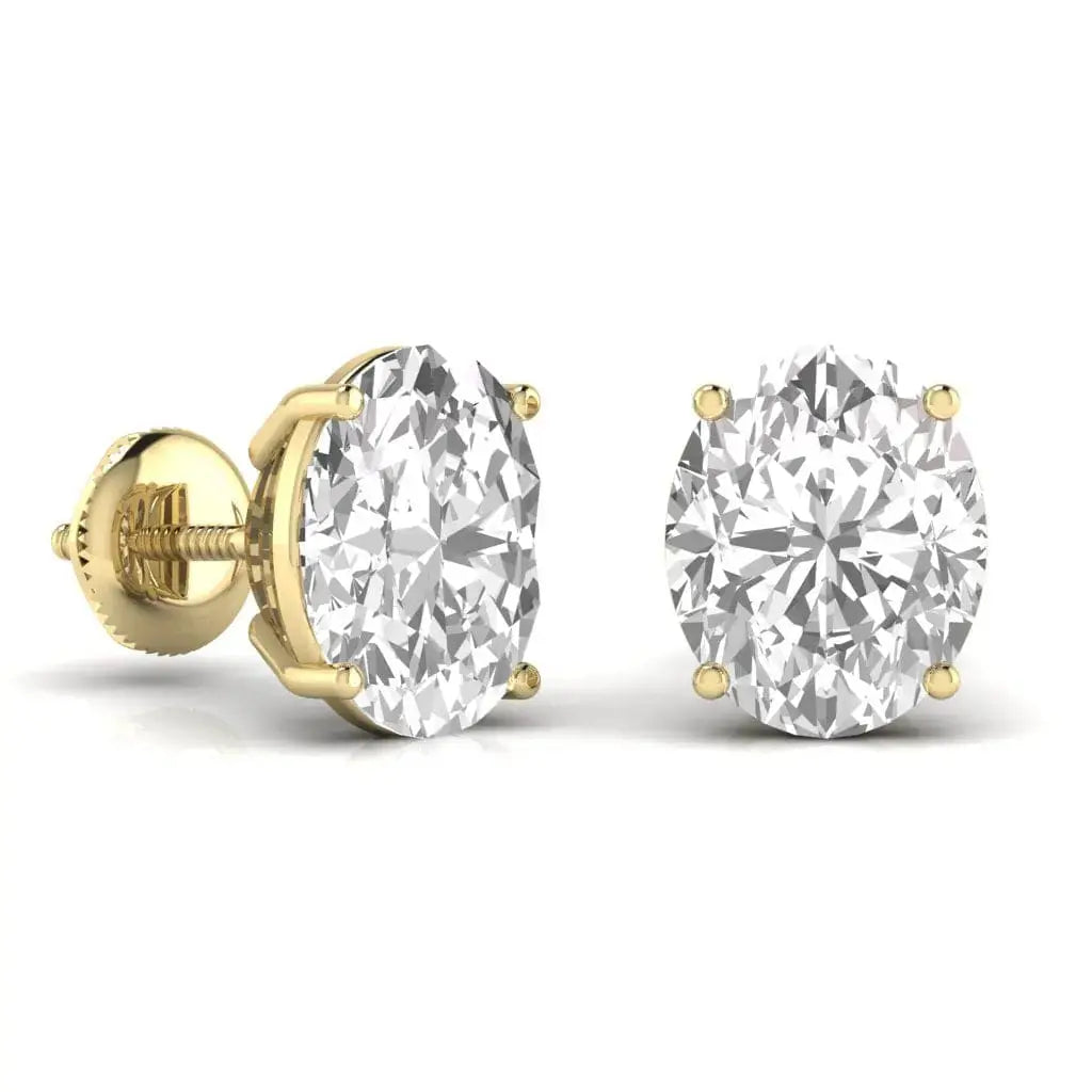 These 2-carat each oval-shaped diamond earrings showcase the brilliance of lab grown diamonds, offering exquisite sparkle with sustainable craftsmanship. Their elegant oval cut enhances their timeless appeal, making them a refined choice for sophisticated occasions. Perfectly balanced and meticulously designed, these earrings bring both luxury and ethical responsibility to your jewellery collection.