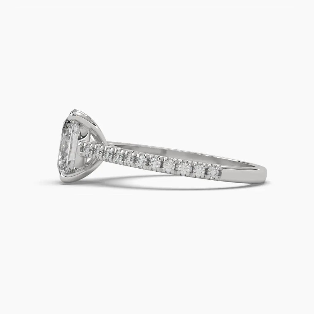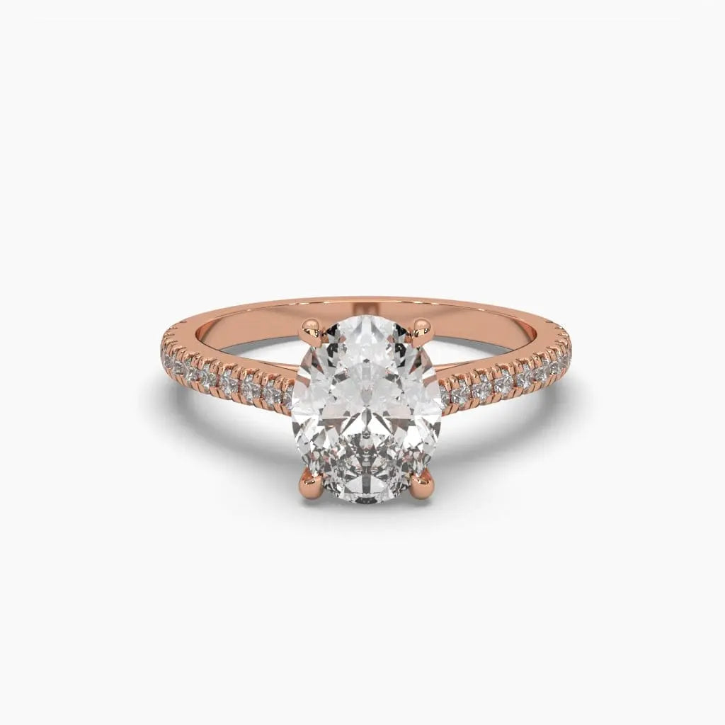 This 2 Carat Oval Diamond Solitaire Ring showcases a brilliant lab grown diamond, offering a sustainable choice without sacrificing elegance. Its classic oval shape enhances the stone’s sparkle and creates a graceful silhouette, perfect for those seeking a refined and ethical statement piece.