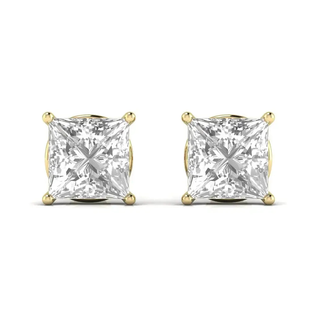 These exquisite 2 carat each princess shape basket earrings showcase the brilliance of labgrown diamonds in a refined design. The basket setting ensures durability while highlighting the sharp facets of the princess cut, creating an elegant and sustainable accessory perfect for sophisticated style.