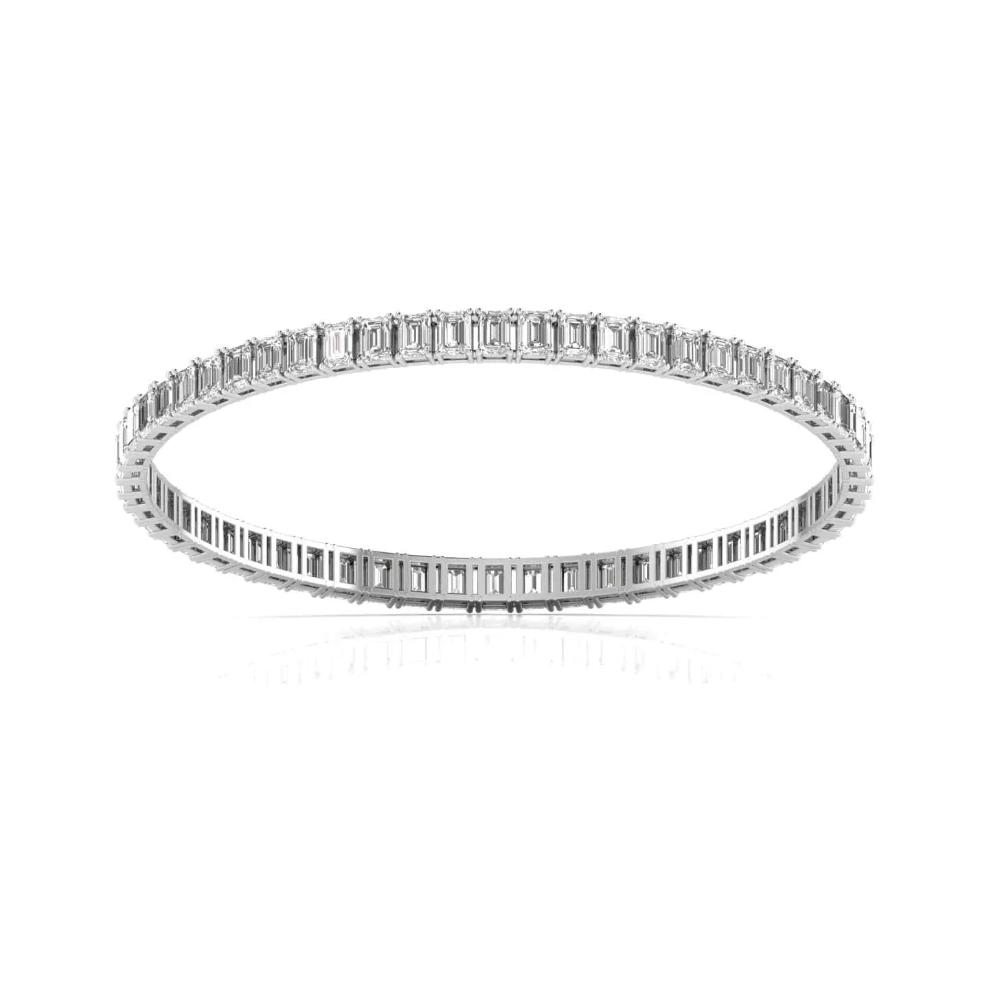 This elegant pair of 20 Pointer Emerald Diamond Bangles showcases the brilliance of lab grown diamonds, combining ethical craftsmanship with timeless design. Perfectly suited for those who appreciate refined luxury, these bangles add a subtle yet striking sparkle to any outfit, enhancing your sophisticated style with sustainable beauty.
