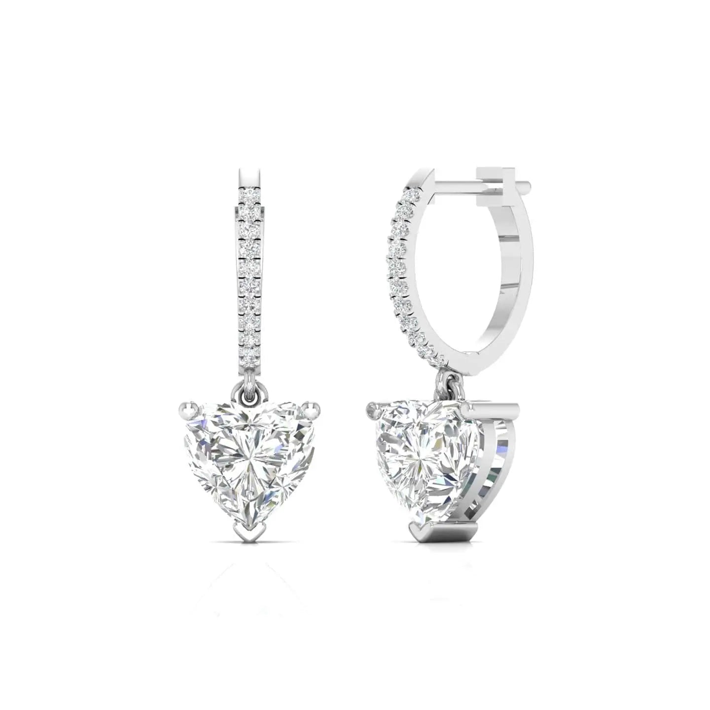 Discover the refined beauty of these 3.03 carat heart-shaped diamond earrings, featuring radiant lab grown diamonds. Expertly designed to highlight their brilliance, they offer a graceful sparkle that complements any sophisticated look, combining ethical craftsmanship with timeless elegance.