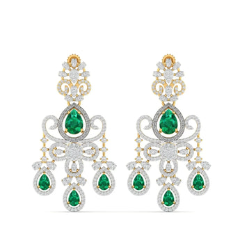 These Diamond Chandelier Earrings in two-tone gold showcase exquisite craftsmanship paired with brilliant lab grown diamonds. The blend of warm and cool gold tones enhances their sophisticated allure, making them an ethical and stunning choice for refined style and special occasions.