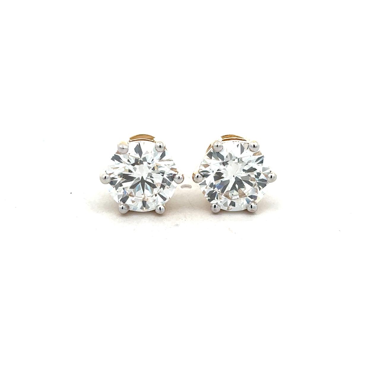 3 Carat Each Round Solitaire Diamond Studs