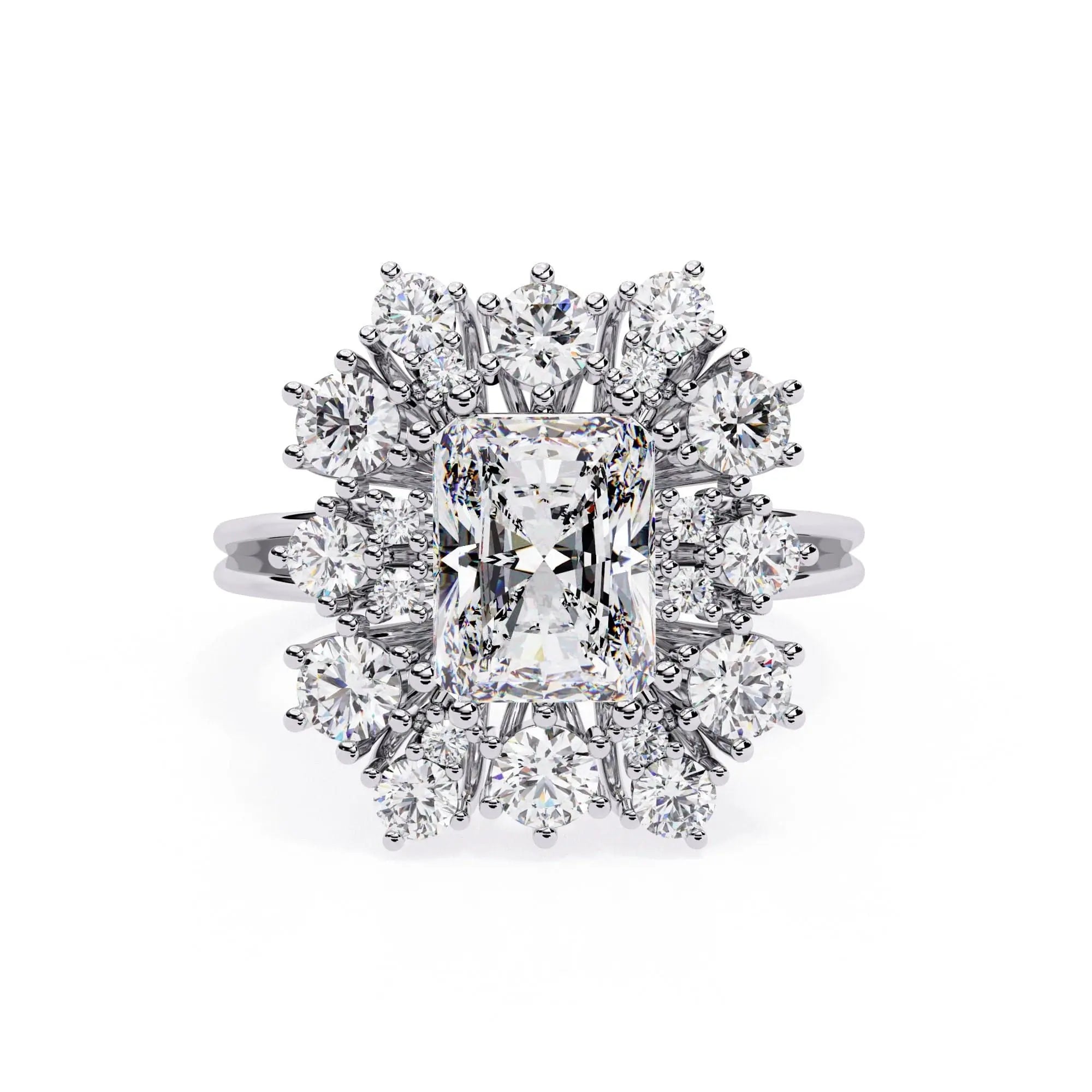 This 3 Carat Radiant Lab Grown Diamond Ring blends timeless elegance with modern sustainability. Its radiant cut maximizes brilliance and sparkle, creating a striking centerpiece that symbolizes refined taste. Crafted with eco-conscious values, this ring offers a sophisticated choice for those seeking luxury with a responsible touch.