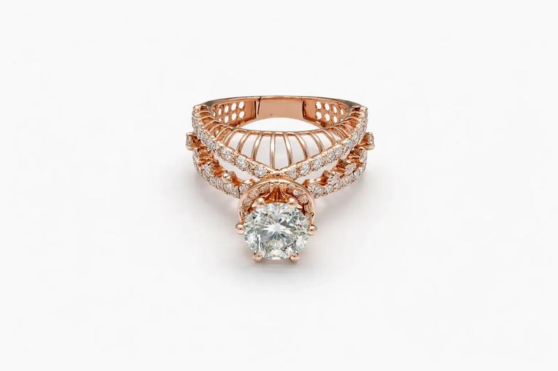 3 Carat Round Cut Diamond Engagement Ring with Ornate Rose Gold Filigree