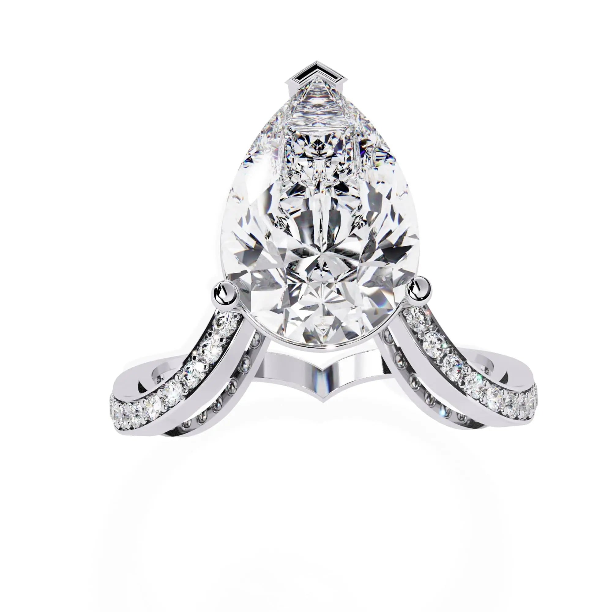 Discover refined elegance with the 4.7 Carat Lab Grown Pear Diamond Ring. This exquisite piece features a stunning pear-shaped diamond, expertly crafted to deliver exceptional brilliance and clarity. Ethically created in a controlled environment, the diamond combines luxury with sustainability. Ideal for sophisticated occasions, this ring offers a timeless appeal for those who appreciate both beauty and conscience.