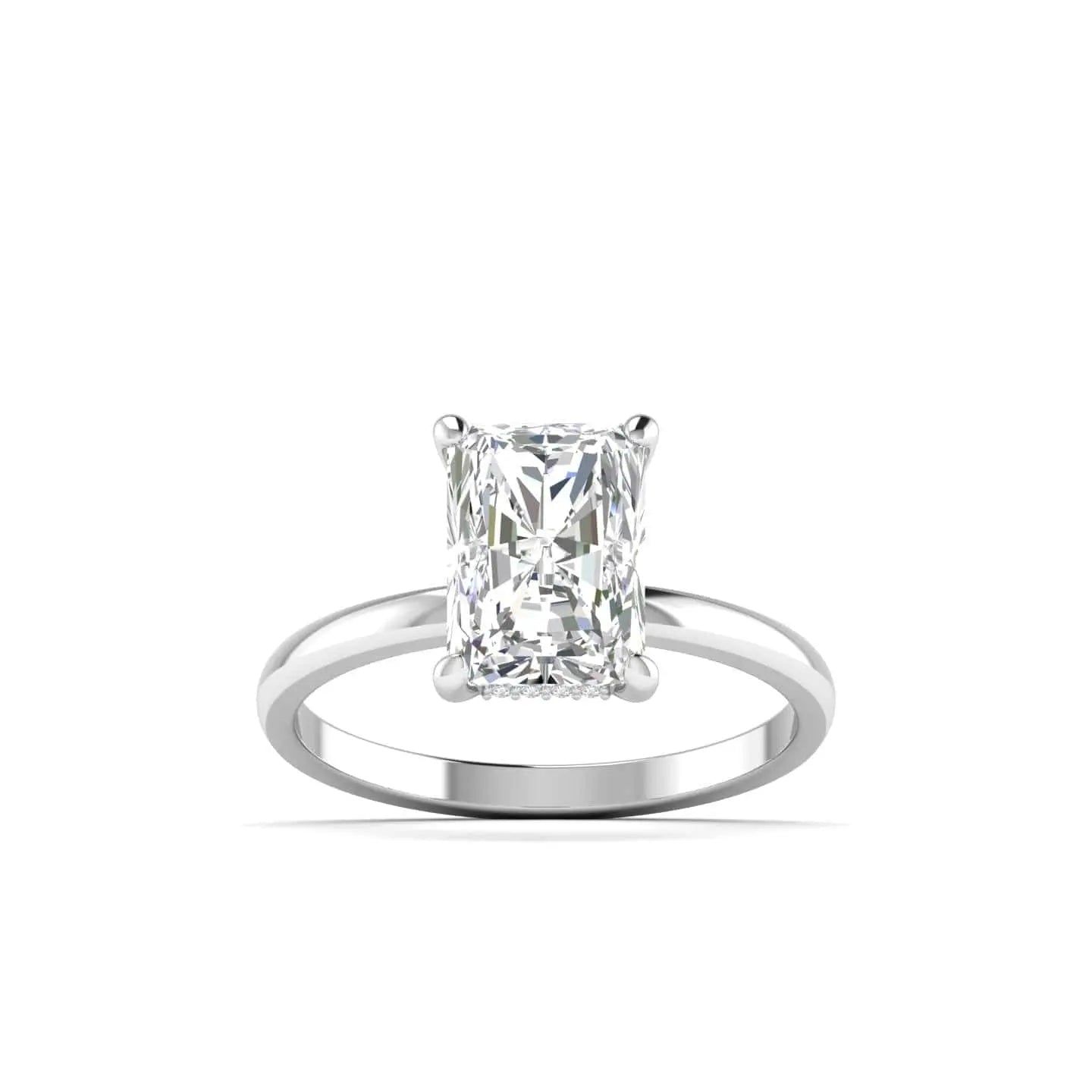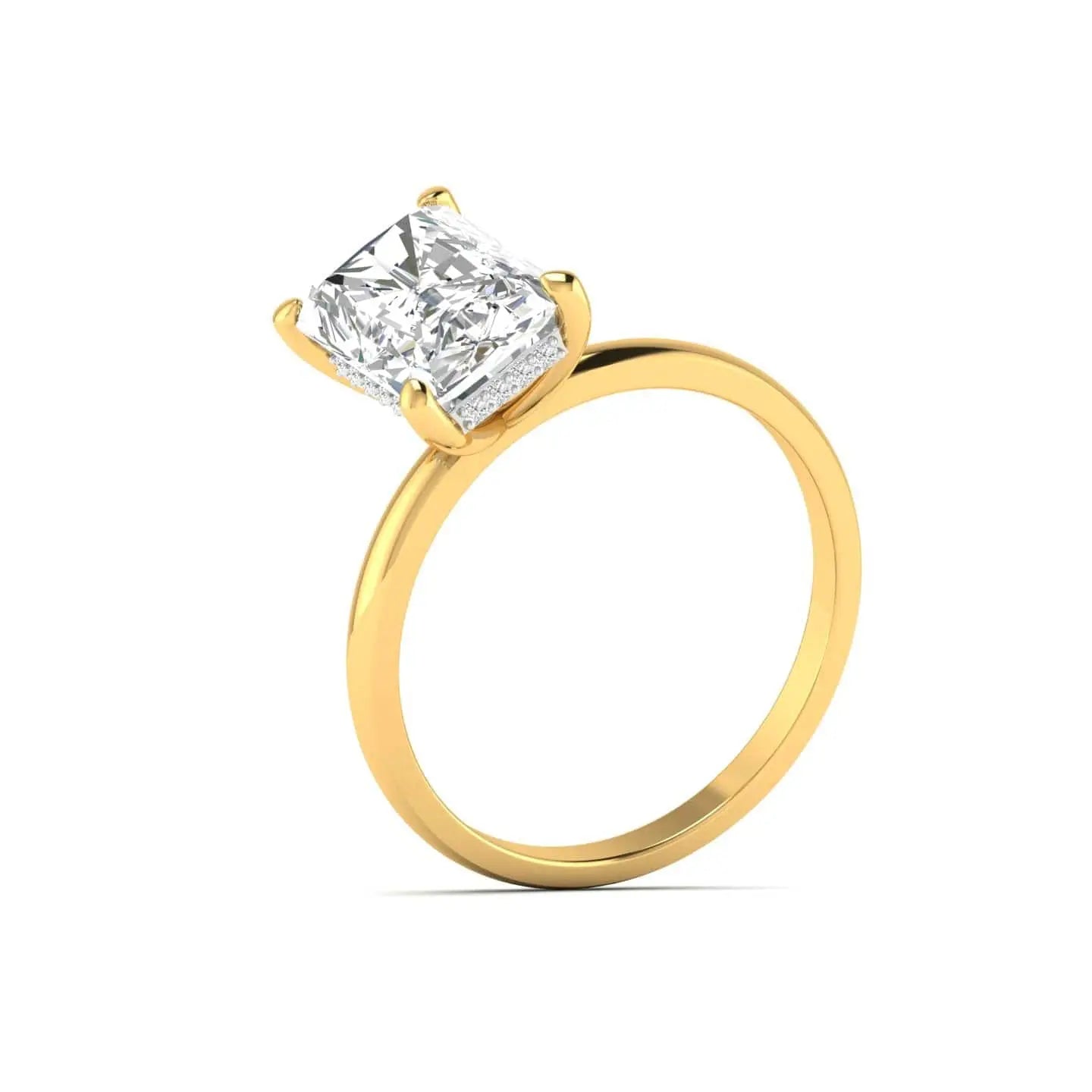 This 4 Carat Radiant Cut Diamond Solitaire Ring showcases a brilliant lab grown diamond, expertly crafted to deliver exceptional sparkle and clarity. Its timeless solitaire design emphasizes the diamond’s radiant cut, offering a refined and sophisticated statement piece that combines ethical sourcing with enduring elegance.