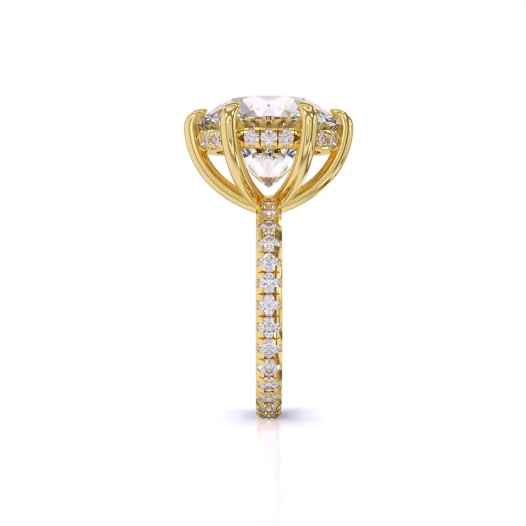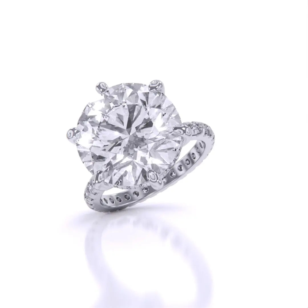 This 5.5 carat lab grown diamond engagement ring showcases exquisite accent stones that amplify its radiant beauty. Designed with precision and ethical craftsmanship, it offers a sophisticated and timeless expression of love, perfect for those who value both elegance and sustainability.
