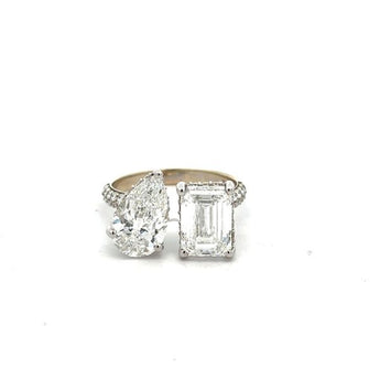 5 Carat Toi Et Moi Diamond Ring with Pear & Emerald Cut Stones