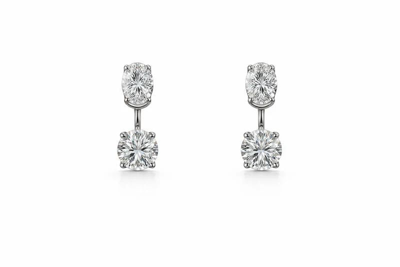 50 cent Oval & Round Diamond Drop Earrings