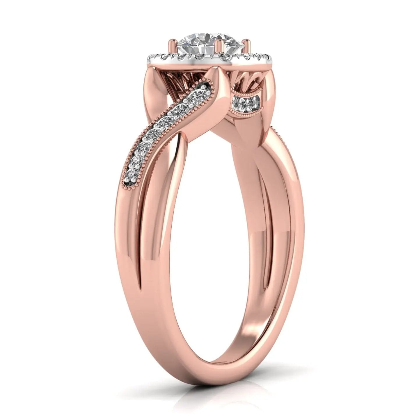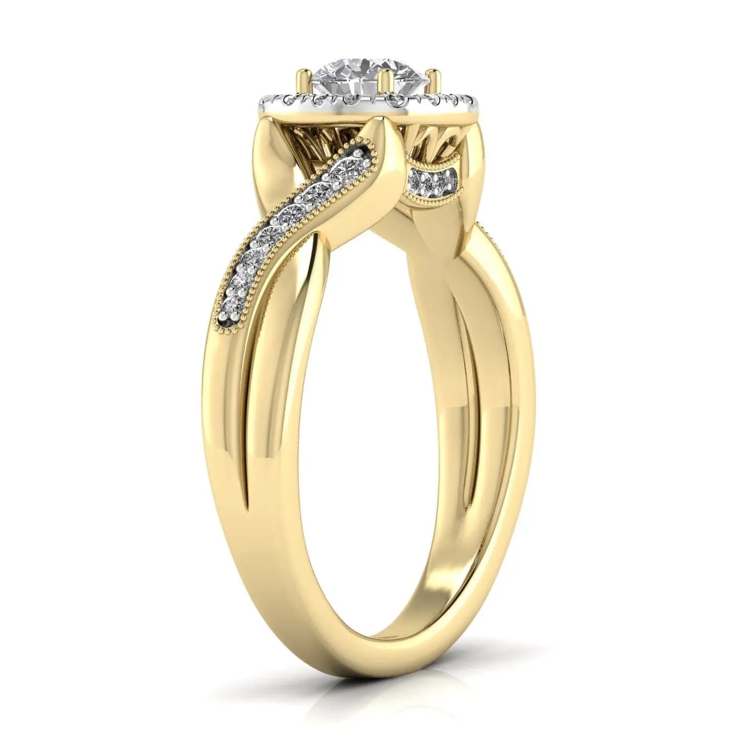 50 Pointer Solitaire Round Diamond Halo Ring