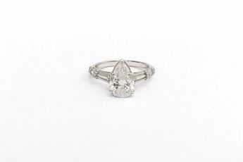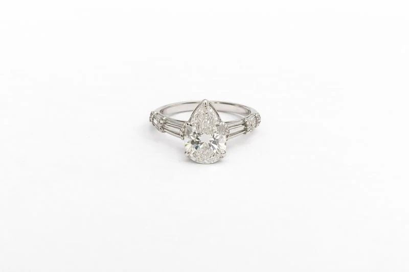 6.47 Carat Pear Cut Diamond Ring with Baguette Side Stones